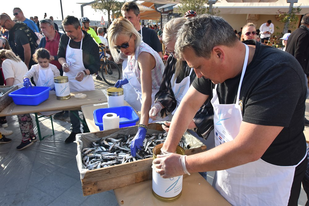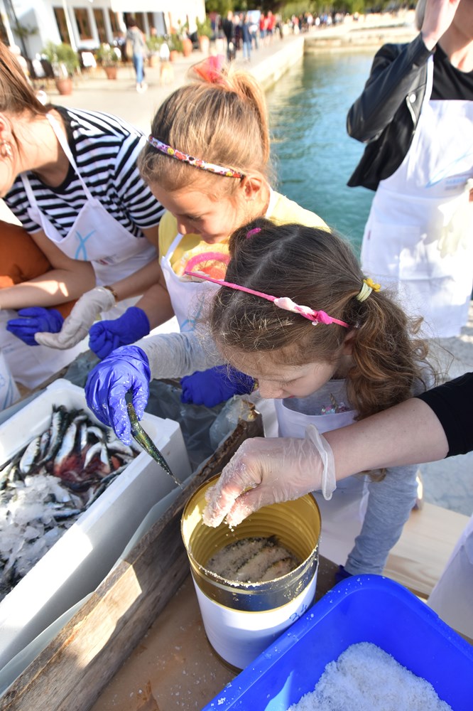 Nakon dvije pandemijske godine na fažanskom su se trgu opet solile srdele. Manifestacija s najduljom tradicijom i ove je godine privukla maksimalni broj sudionika, pa su tako s roditeljima opet i veći broj djece slagala u "važe" malu plavu ribu. U 40 ekipa bilo je najmanje 80 sudionika.