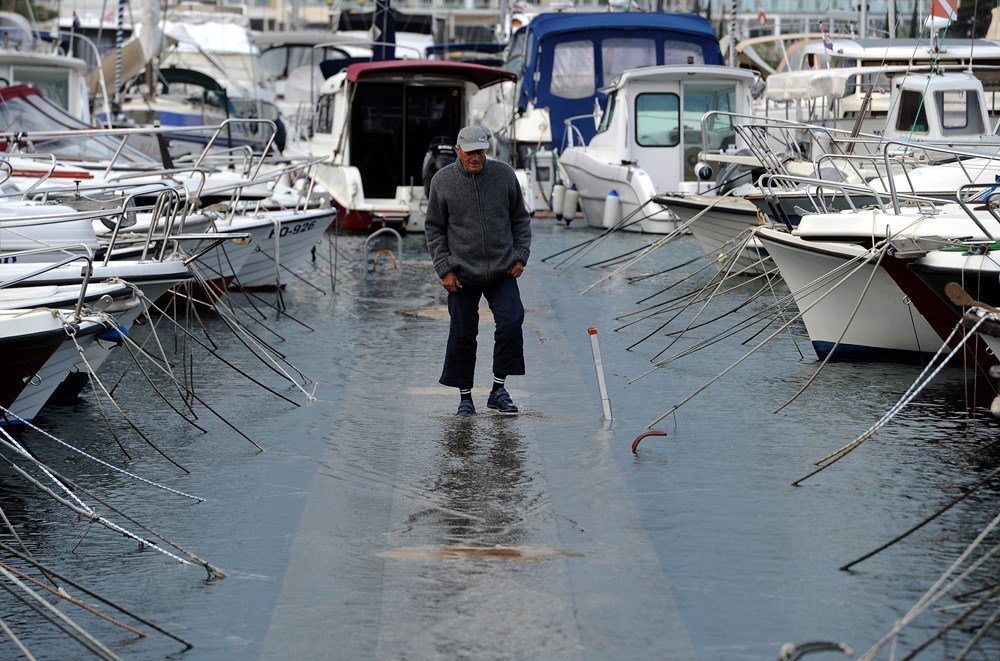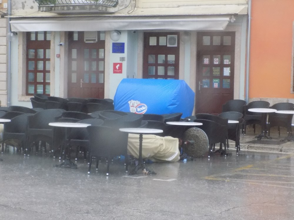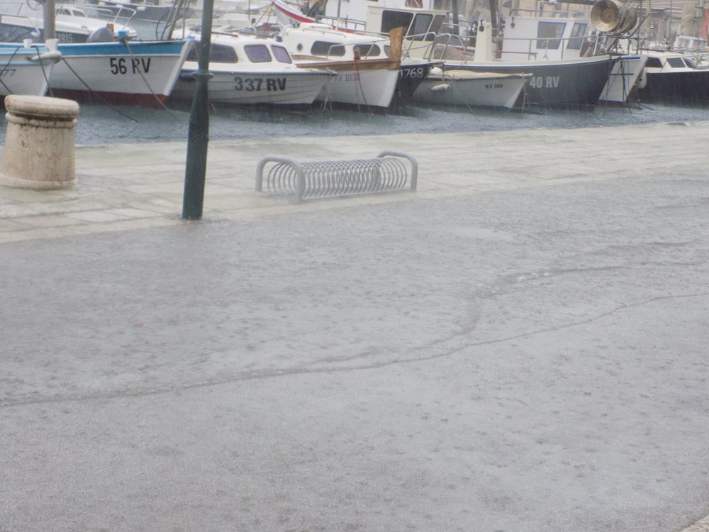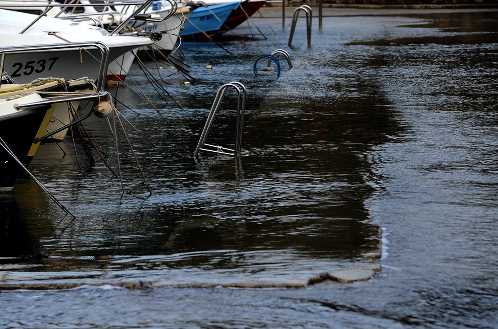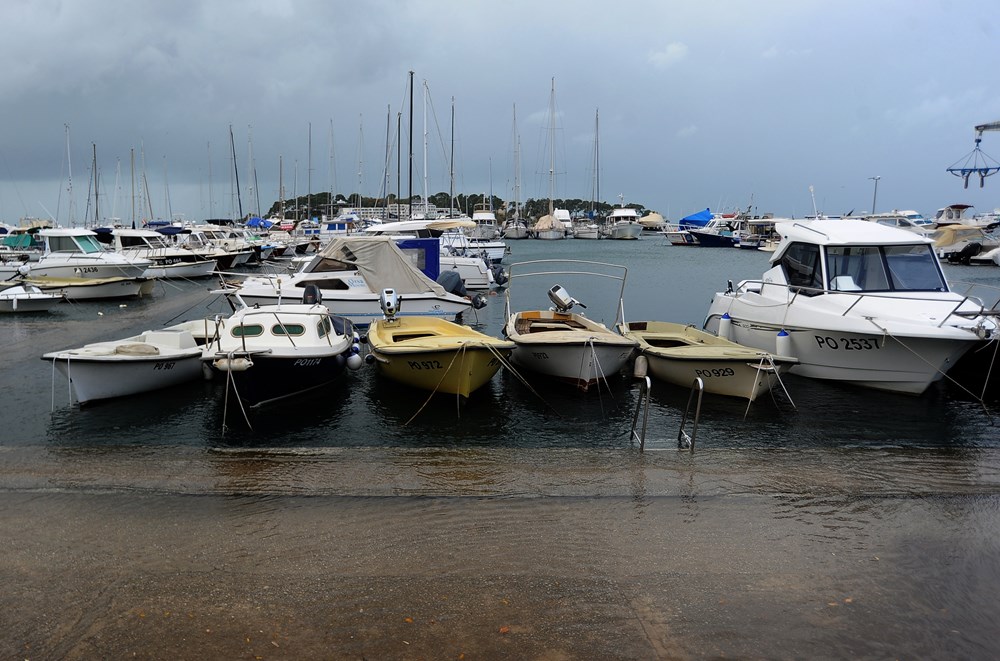 I u Rovinju, gdje je neki dan batana iz mora doplutala na terasu kafića, krenula je izražena plima, a čini se da je to tek početak današnjih vremenskih (ne)prilika.