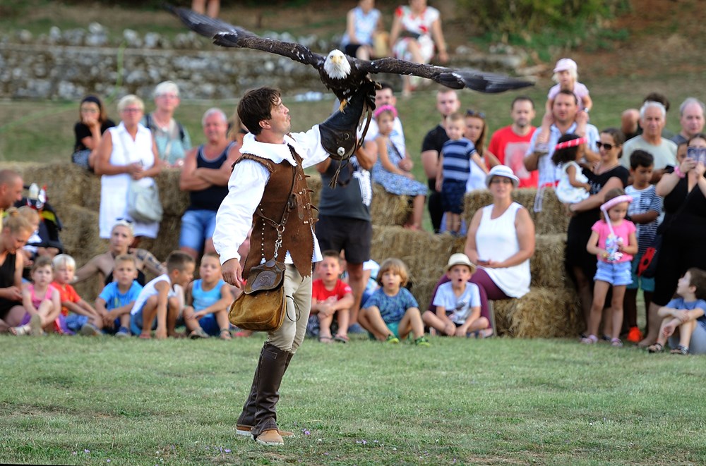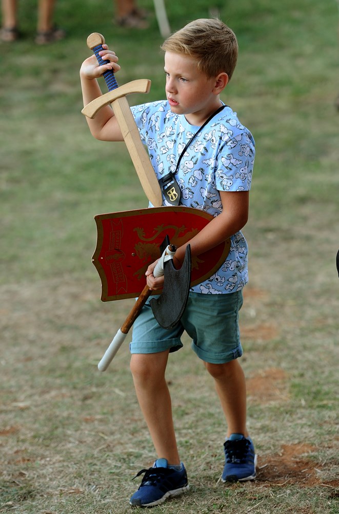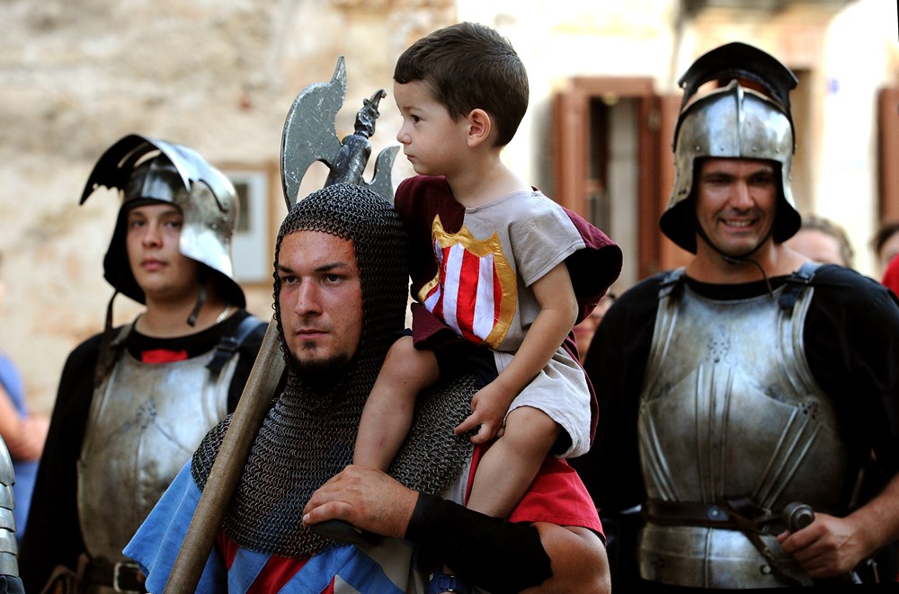 Prvi dan festivala ujedno je i obiteljski dan, a započeo je jedinstvenom atrakcijom, sokolarskim showom, koji su nam priredili Sokolary Sv. Bavona iz Slovačke. Nešto kasnije uslijedio je još jedan impresivan spektakl, ovaj put s akrobacijama sa zastavama, za koji su zaslužni fantastični Sbandieratori e Musici Fornovo Taro iz Italije. Kada se nad Svetvinčenat spustio mrak, započela je Dječja bitka za obranu kaštela u kojoj su se koristila razna srednjovjekovna oružja, pa i katapulti s vatrenim kuglama, u kojoj su sudjelovale sve udruge. Dosta vatre i mačevanja bilo je i u kasnijim nastupima, a prva noć festivala završila je glazbenim nastupom mađarske grupe koja oživljava glazbu nekih davnih vremena, Holloenek Hungarica. (Piše Patricija SOFTIĆ, Snimio Milivoj MIJOŠEK)