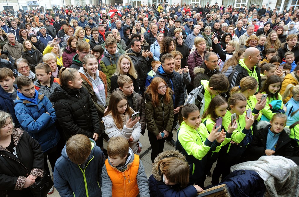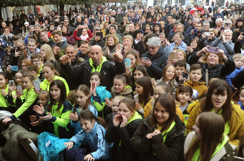 Zaorilo se trgom Linovo ime, usklici „volimo te“ i zasvirala je neslužbena rukometna himna. Potom se uz čašu pjenušca i slavljeničku tortu koju je darovala druga umaška šampionka, slastičarka Dragica Lukin nastavilo sa čašćenjem u sportskom tonu i dobrom raspoloženju.