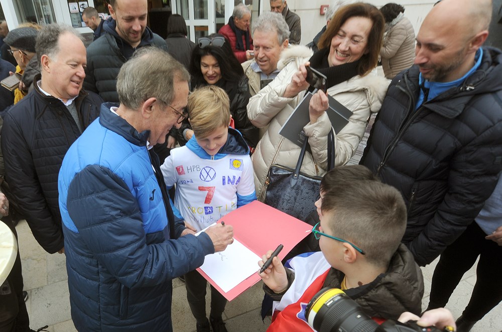 Tu smo da im kažemo koliko smo ponosni na njih što promoviraju ime male Hrvatske u svijetu, kao i našega Umaga, jer prije svega lori xe de Umago i to za nas sportaše i njihove sugrađane ima snažnije emotivno značenje, kazala je Bassanese Radin pozivajući malog rukometaša i nogometaša Stefana da im uruči „friško izdanje“ kataloga o povijesti rukometa, tiskano za Noć muzeja, istaknuvši da je Linovo ime zapisamo u katalogu, dok će Valentinovo zasigurno biti u nekom sljedećem izdanju. Červar se potom obratio dirljivim govorom, a pristuni su ga počesto prekidali izvikivanjem njegova imena i Hrvatske.