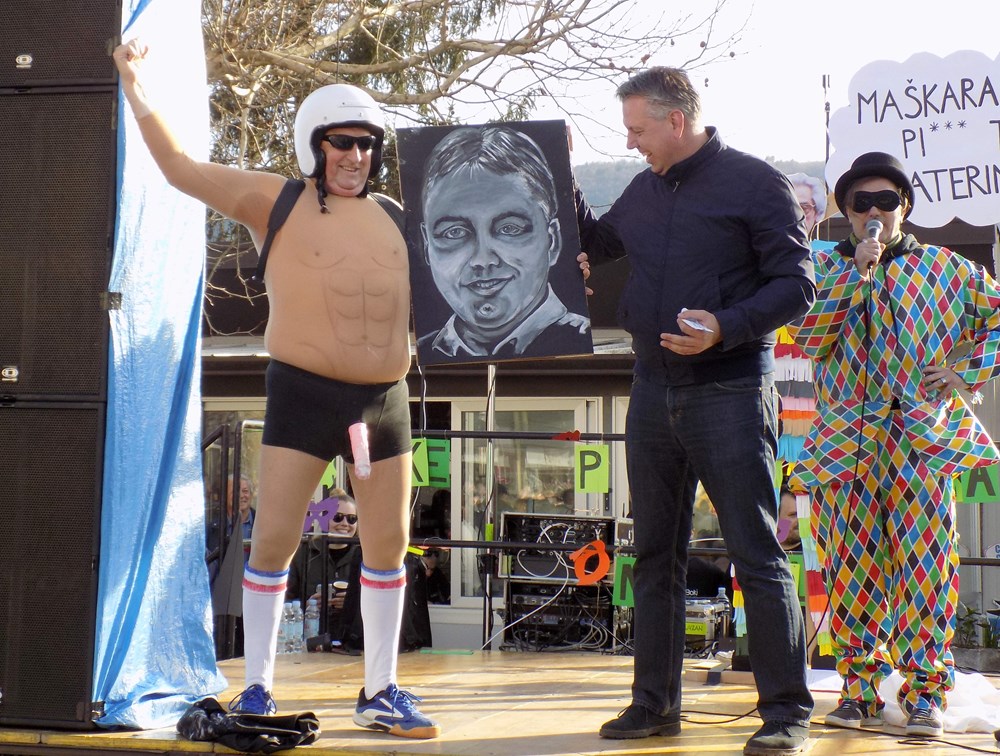 Početak karnevala je kasnio, pojavila se i jedna veća grupa "rupa", ali je zato posjetitelje na suncem obasjanoj Fontani zabavljao uhodani voditeljski dvojac Mila Nežić iz Turističke zajednice i Šajeta prerušen u Mirka Fodora. Nema straha za pusnu tradiciju, puno je malih maškara rame uz rame s odraslima kročilo gradskim ulicama. Najmanjoj maškari bilo je tek četiri mjeseca, a najstarija je davno proslavila 70 rođendan. Živjele maškare! (Napisala i snimila Gordana ČALIĆ ŠVERKO)