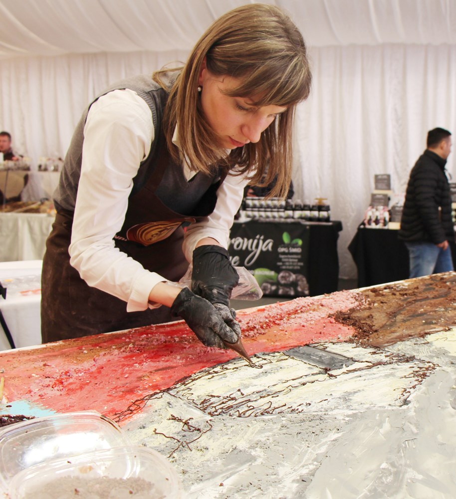 Čokolada je bila u prvom planu, jer su vrsni majstori pokazali što se sve može s čokoladom i od nje, od svima poznatih načina korištenja u kolačima i drugim kulinarskim kreacijama, do korištenja čokolade za izradu skulptura ili umjesto boje na slikarskom platnu