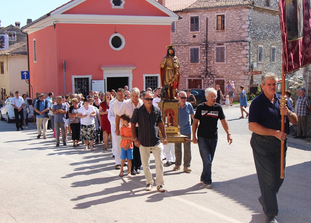 Jučer je, na sam blagdan svetog Roka, program počeo u jutarnjim satima svečanim misnim slavljem u župnoj crkvi sv. Zenona. Koncelebriranu misu posvećenu svetom Roku predvodio je bujski župnik Vladimir Brizić uz mjesnog župnika Željka Rajčića i nekoliko svećenika iz okolnih župa. Župnik Brizić je govorio o tom svecu, njegovim žrtvama koje je podnio, te porukama koje se i danas mogu primjenjivati u svakodnevnom životu. Na misno slavlje vjernici su došli u procesiji od crkvice svetog Roka noseći ulicama Brtonigle kip svog mjesnog zaštitnika.