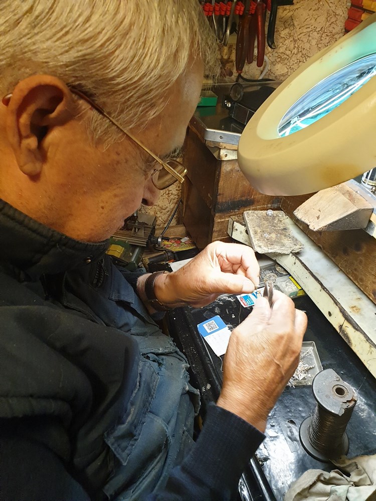 A ono što 87-godišnji Gjon Lekaj još uvijek radi, pored svega je i umjetnost. I to kakva! Tim neobičnim i sve rjeđim načinom izrade nakita bavi se punih 55 godina. Impresivno, dakako. Jer, radi se o poslu koji iznad svega traži savršenu i mirnu ruku, dobar vid i, što je najvažnije, mnogo, mnogo strpljenja…To se može samo uz veliku ljubav prema tom poslu. O toj ljubav i svemu pomalo razgovaramo u njegovom poslovnom prostoru u Umagu, gdje je Gjon uselio prije 55 godina, uredio je oronulu prostoriju, više šupu, ali počeo je. Zapravo, nastavio je ono što je radio kao mladić u rodnom Prizrenu, kraju u kojemu je takav način izrade nakita davnašnja tradicija.