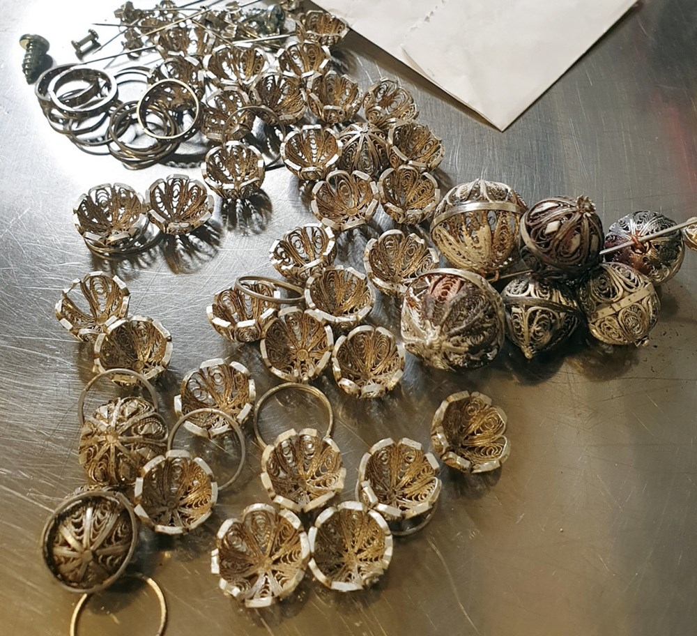 - Dobijemo srebrnu žicu i onda je posebnim alatom treba istezati do potrebne debljine. Što tanja nit, to je bolje. Najviše radim sa debljinama od 0,26 milimetra, dakle skoro četvrtina milimetra. I onda se plete što želiš, pojednostavljeno će Gjon. Srebrna nit prilikom izduživanja i stanjivanja prolazi kroz sve manji i manji otvor u alatu, a sve je trebalo pokretati ručno. To je, kaže, bio teži dio posla.
