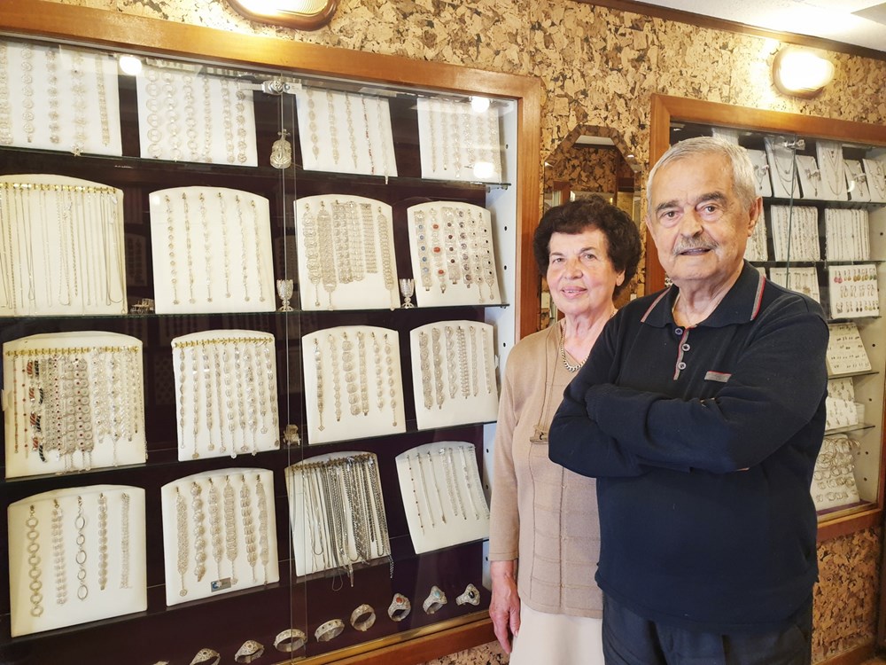 - Da, ovdje smo zaista dobro primljeni. Kad smo došli u Umag stariji ljudi su uglavnom govorili talijanski, hrvatski vrlo malo. Sjećam se jedne susjede koja nam je svaki dan donosila svježe mlijeko za djecu, nije znala hrvatski, a ja talijanski, ali uspijevale smo se sporazumjeti. Zaista, ljudi su nas ovdje dobro prihvatili, od prvog dana. Inače, Gjon još plaća sve doprinose, ne želi u mirovinu, bilo bi mu dosadno. Ovako, on svaki dan i dalje dolazi u radnju, radi, pa dok može. Ja sam uz njega, podržavam ga u svemu, davno sam vidjela da on taj posao neizmjerno voli, da ga dolazak na posao raduje, a to je najvažnije. On se zavuče u svoj radni prostor, a ja sam zadužena za kupce, za goste, ako nešto treba tu sam…Dolaze ljudi, potraže neki prigodan dar, ima i stranaca koji vole takav nakit, izaberu nešto, mnogi samo pregledaju, pitaju kako se to radi i tako, netko voli tamnije srebro, netko svjetlije, uglavnom tu smo i dalje, dodaje Flora pokazujući velik asortiman srebrnog nakita u vitrinama na zidovima. Sve je to izradio Gjon svojim zlatnim rukama, većinom bez dodatnih dekorativnih elemenata poput kamenja ili koralja, već samo stvarajući čipkaste strukture geometrijskih i srodnih motiva.