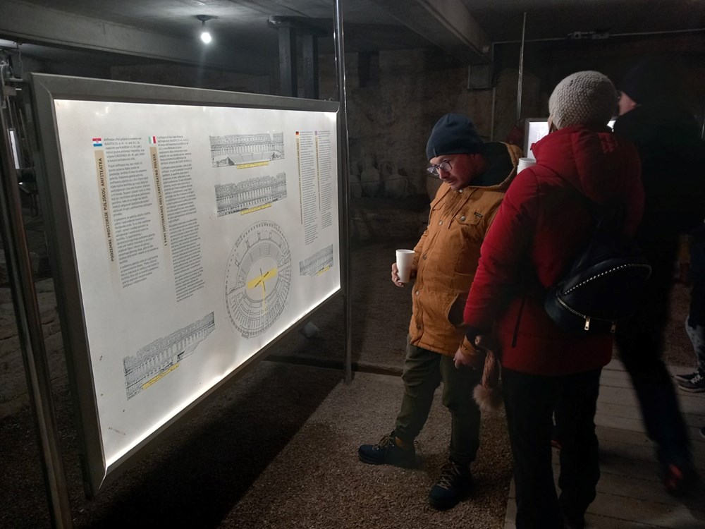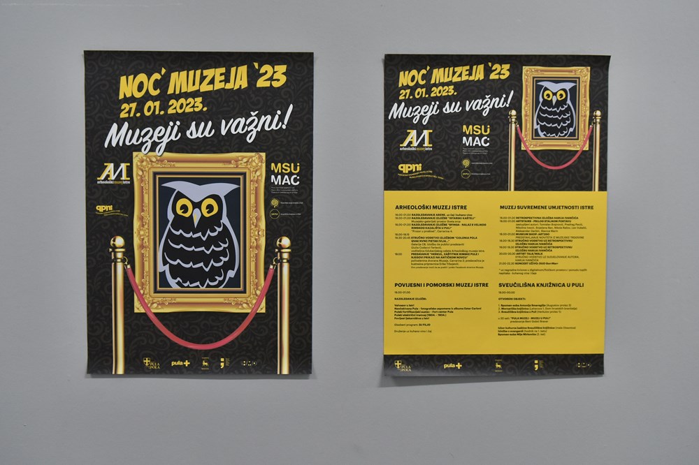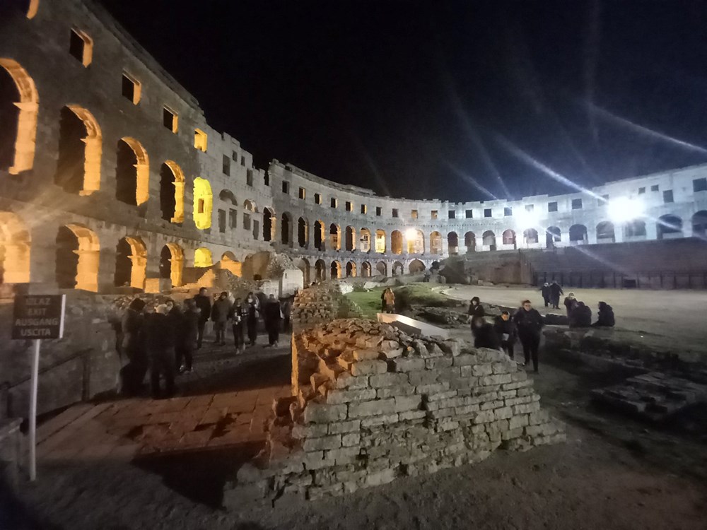 Uz slogan i naslov manifestacije "Muzeji u važni!" posjetitelji su mogli razgledati Arenu uz kuhano vino i topli čaj, a bilo je tu i stručno vodstvo izložbom "Colonia Pola, Qvae Nvnc Pietas Ivlia..." uz voditeljicu Edukacijskog odjela Arheološkog muzeja Istre Giuliu Codacci Terlević u Galeriji C8. Već tijekom poslijepodnevnih sati tu su izložbu organizirano posjetila djeca iz produženog boravka OŠ Tone Peruška sa svojim učiteljicama. Potom su tijekom cijele večeri tu bile grupe zainteresiranih raznih godišta.