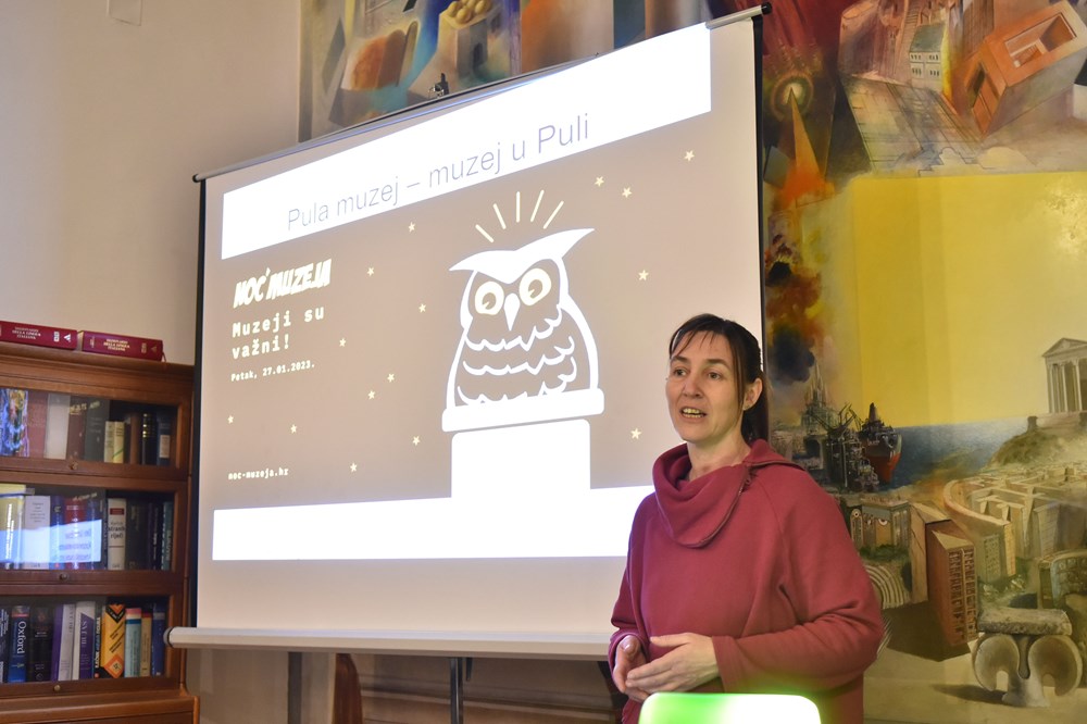 U Sveučilišnoj knjižnici, koja je otvorila sve svoje zbirke i spomen-sobe, Đeni Gobić-Bravar iz Arheološkog muzeja Istre održala je također vrlo zanimljivo i sadržajno predavanje "Pula muzej - muzej u Puli", navodeći da je ovaj grad još u davnoj prošlosti svojim bogatim spomenicima i nalazima bio sam po sebi muzej. Bilo je govora i o Velikom rimskom kazalištu te o činjenici da je Pula već u svojim zidinama bila muzej.