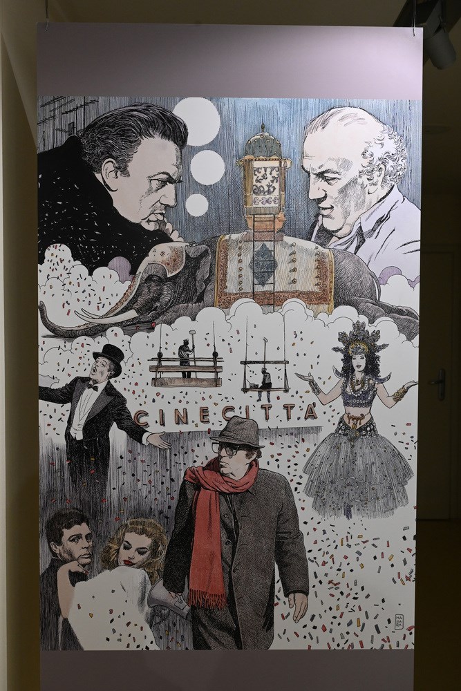 Osim dijela izložbe posvećenog Ecu, drugi dio odnosi se na Manarine veze sa svijetom filma, u prvom redu na suradnju s Federicom Fellinijem na stripovima "Viaggio a Tulum" (Put u Tulum) i "Il viaggio di G. Mastorna, detto Fernet" (Putovanje G. Mastorne zvanog Fernet).