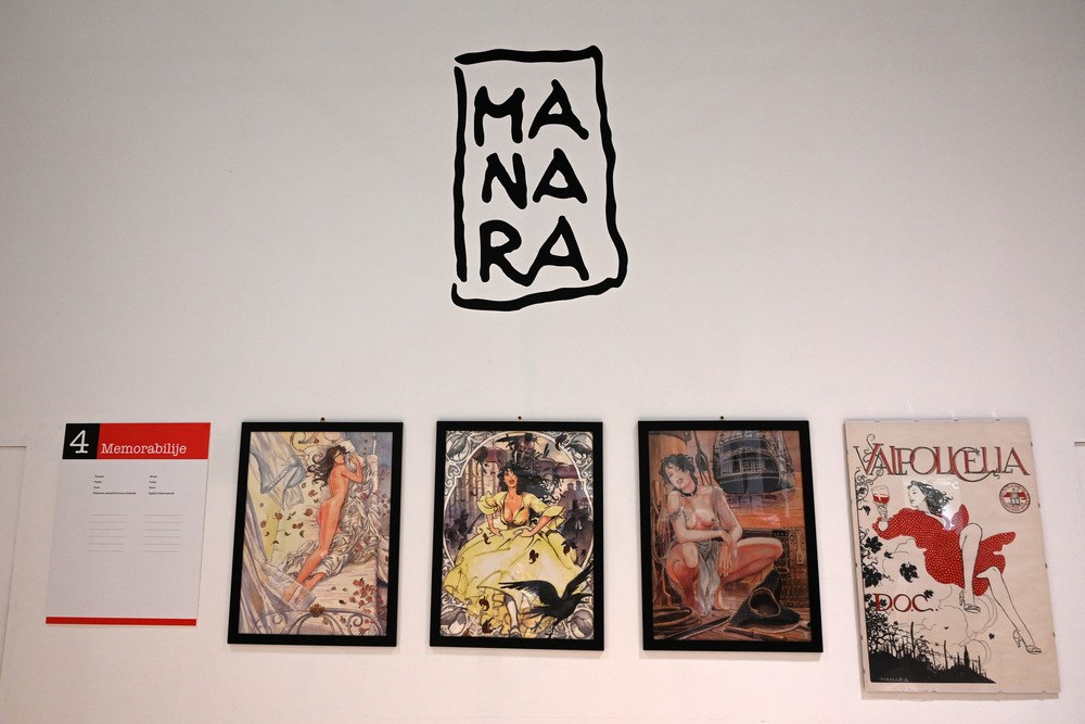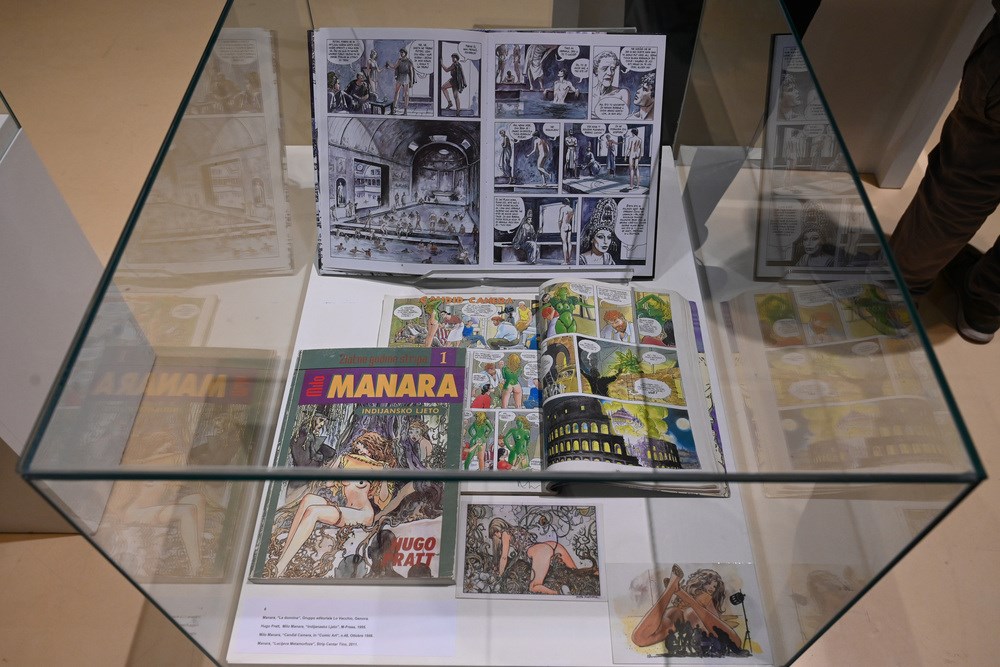Premda je tu izložen tek dio višedesetljetnog stvaralaštva ovoga autora, poznatog u cijelom svijetu, posjetitelji mogu pogledati tri segmenta izložbe. Prvi je povezan s literaturom, drugi s filmom, treći sa slikarstvom, a sva tri zajedno na najbolji način predstavljaju Manarin crtački stil, koji spada među najvažnije i najreprezentativnije u svijetu stripa.