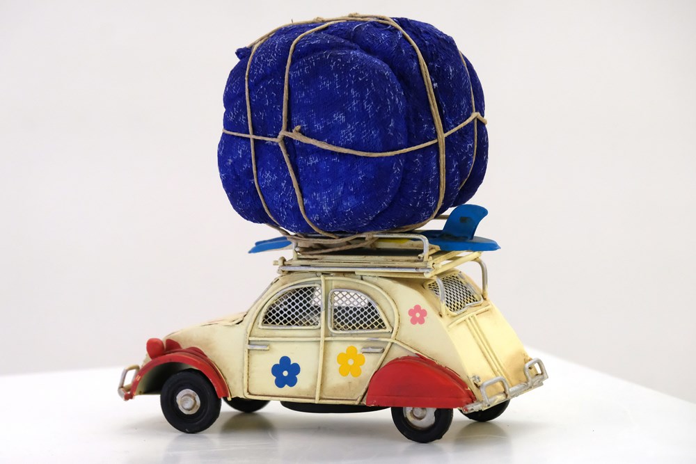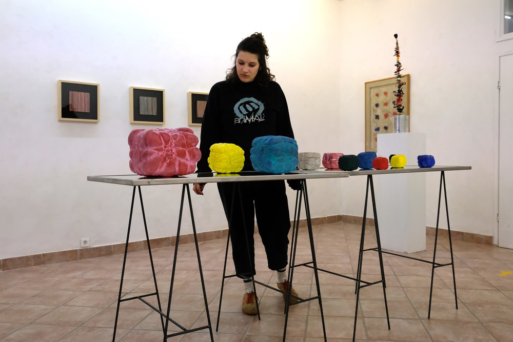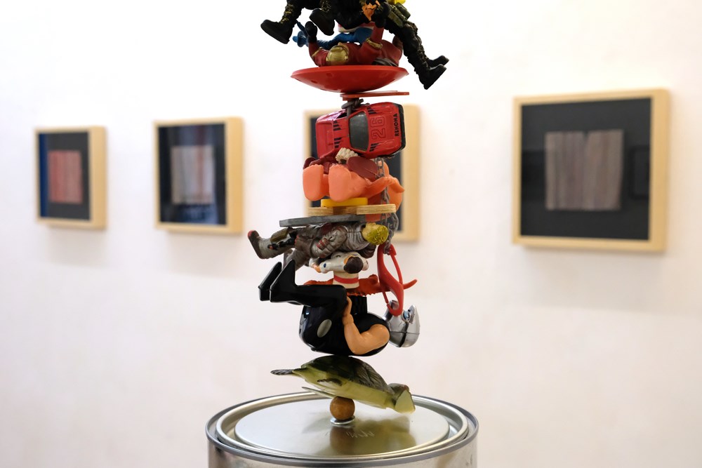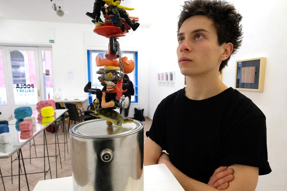 - Zanimljivo je što su to radovi nastali od radova koje on ne baca. Čak i skuplja smeće sa svog radnog stola i stavlja u plastične vrećice i od njih radi prekrasne kompozicije. Nastoji iskoristiti nešto što je njemu zanimljivo kao forma i onda od te forme, boja i kompozicija, on napravi novi oblik. Pomodno bi rekli da on reciklira, ali to njemu nije glavni cilj nego mu je glavni cilj kako jedan oblik pretvoriti u drugi oblik, kazala je Ziherl i pokazala na skup igračaka starih 20 ili 30 godina koje je posložio i spojio u jedan drugi oblik koji se može i njihati kada se dodirne.