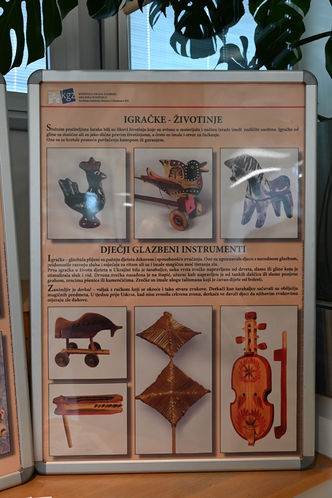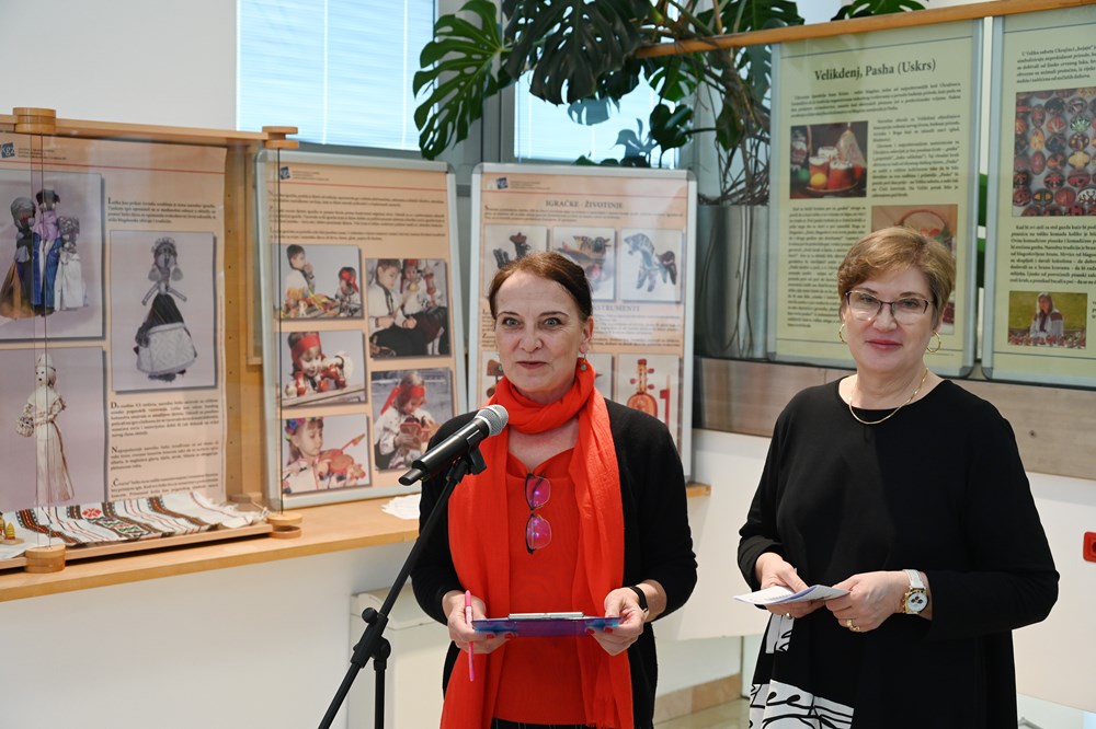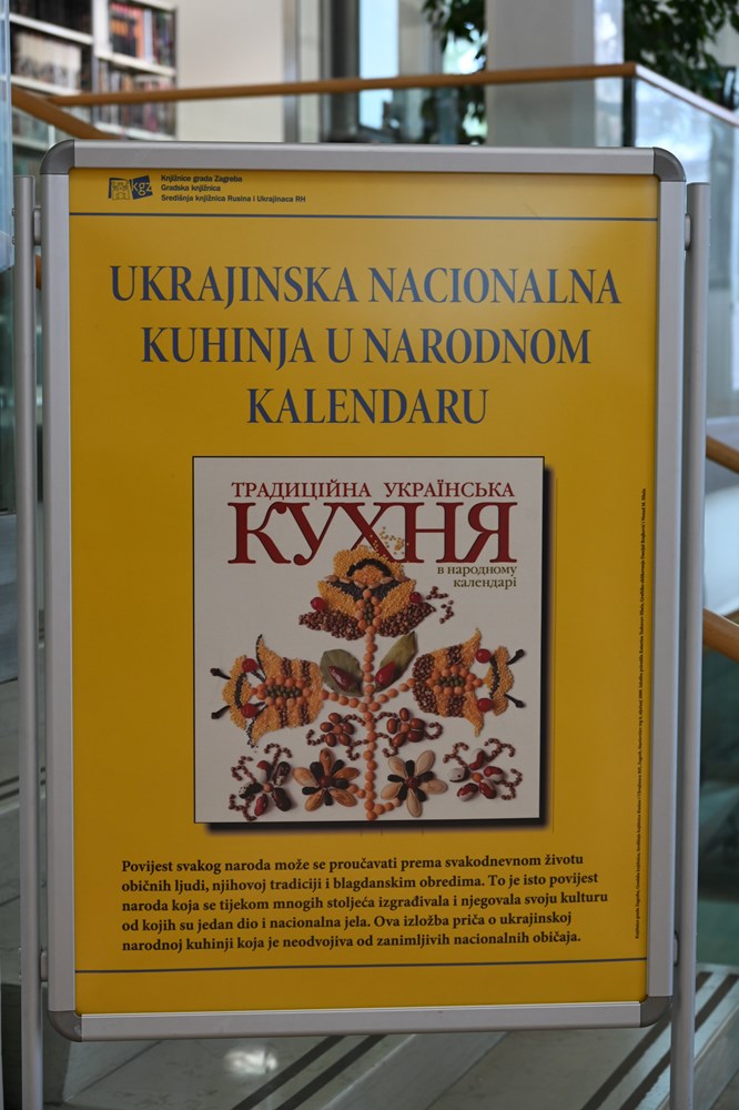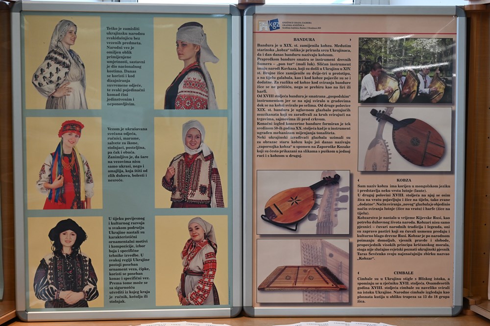 Ova izložba predstavlja tradiciju Ukrajinaca kroz glazbene instrumente, tradicijski vez, igračke i ukrajinsku kuhinju, a upriličena je u povodu nadolazeće 30. obljetnice Središnje knjižnice Rusina i Ukrajinaca u RH.