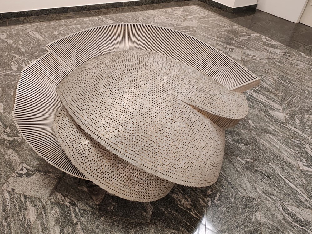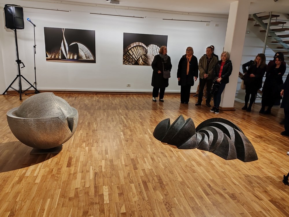 - Osim što je ova izložba pozdrav Fedoru Džamonji ona je i sjećanja na jednog od naših najvećih kipara Dušana Džamonje iz druge polovice 20 stoljeća. Mi smo se bavili jednom širom temom što je kod umjetnika uvijek moguće a ja sam je nazvao kad skulptura postane arhitektura. Džamonja je rano osjetio i primijenio taj trend u svom radu a on je omogućen jednom genezom koja traje 50 godina jer je bio jedan od prvih umjetnika u svijetu koji su otvorili taj unutrašnji prostor skulpture i tako se dobije jedan omotač, kada se napravi u monumentalnim dimenzijama može postati arhitektura. Najbolji primjer za to imamo u Islamskom kulturnom centru, u Džamiji u Rijeci koja je izvorno formalno izvedena iz njegovih kružnih formi koje se razlistavaju u prostoru.