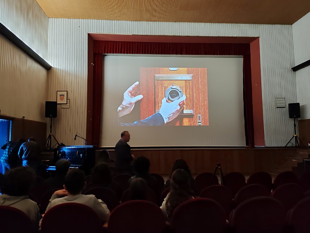 -Ovo su predmeti koju pričaju svoju priču o povijesti fotografije i kinematografije. Neobično sam oduševljen, sretan i ponosan da su ovi artefakti ugledali svjetlo dana i da ljudi mogu uživati u njima kao što sam ja uživao do sada a uživati ću i dalje, a uz put mogu nešto i naučiti. Program je vrlo bogat, ne samo izložbe nego i puštanje prvih filmova, braće Lumiereiz iz 1895. godine i sviranje uz te nijeme filmove na starom pijaninu iz 1900. koji je restauriran i uređen. Na kraju programa nastupiti će i Trio Histriatria sa svojom autorskom glazbom, rekao je Puškarić. U dvorani Kina Labin prije prikazivanja prvih nijemih filmova posjetiteljima je kratko predavanje o nastanku i povijesti kinematografije i filma održao Boško Picula, filmski kritičar, politolog i docent na Fakultetu političkih znanosti u Zagrebu a zatim je prikazana projekcija prvog nijemog filma braće Lumière "Izlazak radnika iz tvornice Lumiere u Lyonu" koji je snimljen 1.veljače 1985. a prikazan je u jednom Paričkom salonu 22. ožujka iste godine. Zanimljivo je kako je projekcija izvedena kao nekada uz klavirsku pratnju multiinstrumentalista Sandija Bratonje uživo. Prikazana je i prva komedija „Poliveni polivač“ te još nekoliko prvih filmova koji su bili vrlo kratki. Picula je istaknuo kako je Labin večeras filmsko i fotografsko središte svijeta te dodao