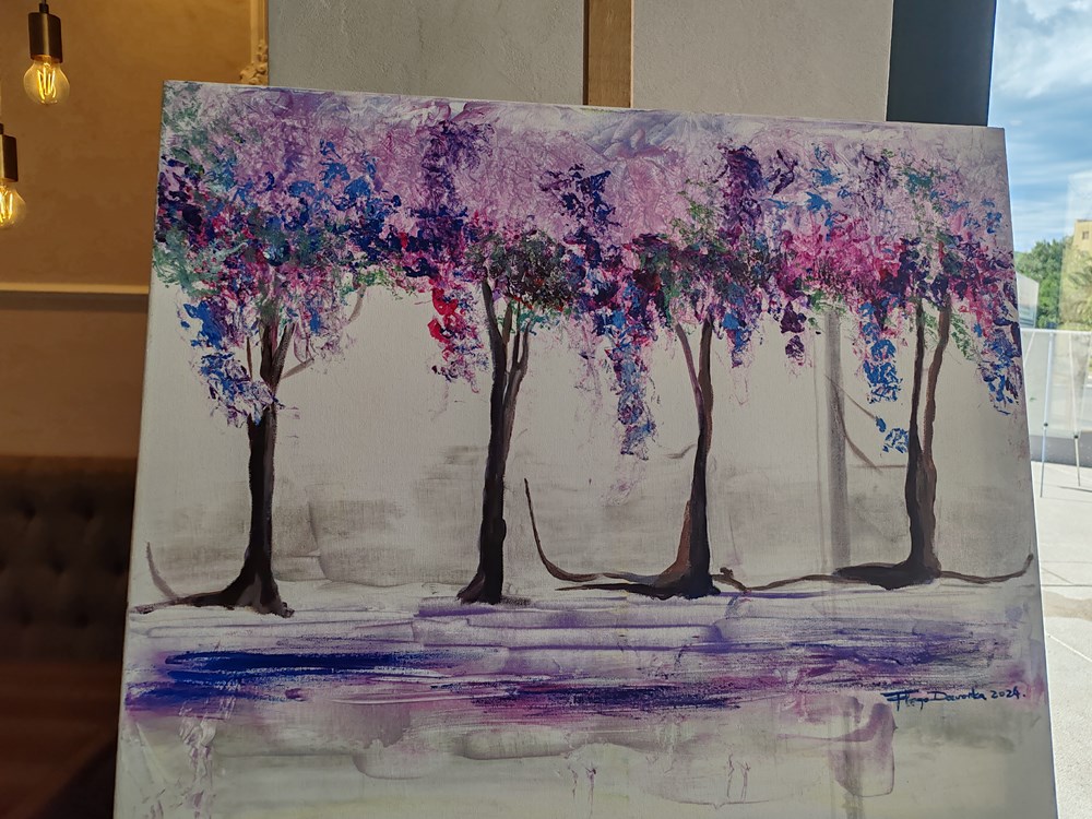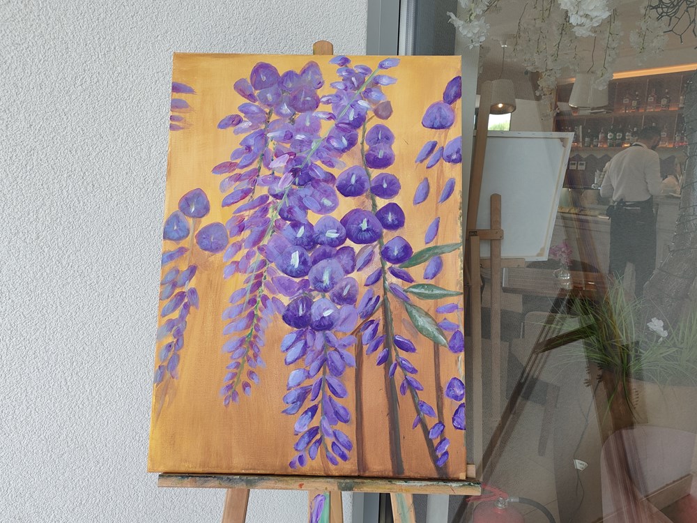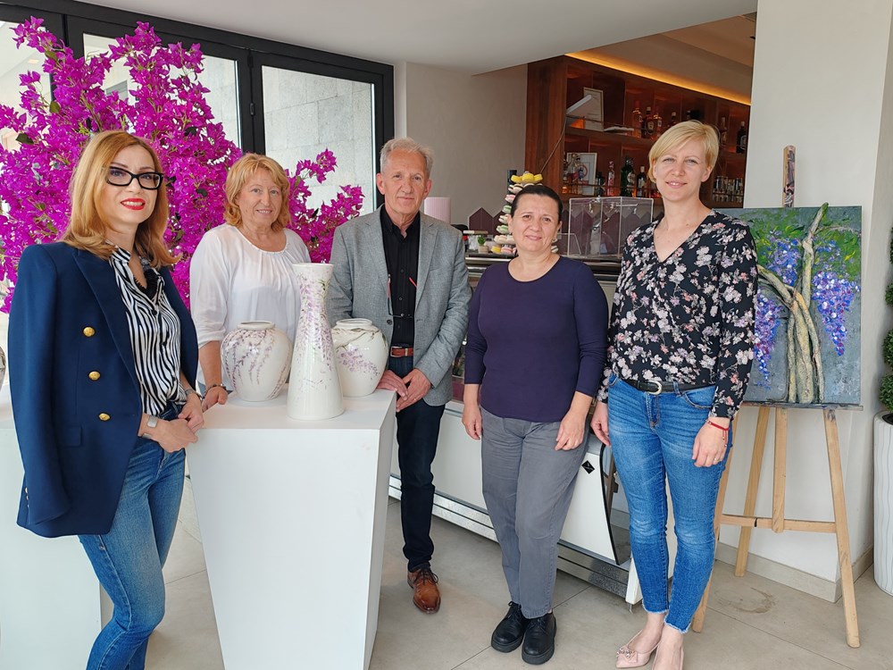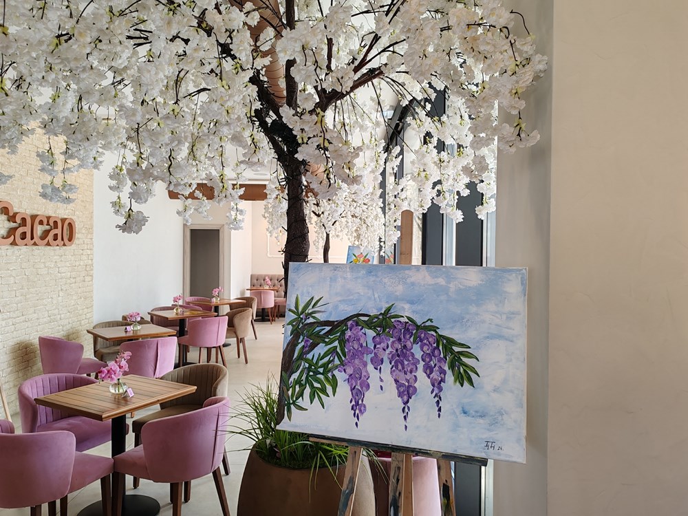 U caffe bar slastičarnici Cacao svečano je otvorena izložba i aukcija slika na platnu i radova od terakote na temu glicinije nastalih početkom svibnja na Festivalu cvijeća u Labinu koji je ove godine imao izraženu umjetničko-humanitarnu notu.