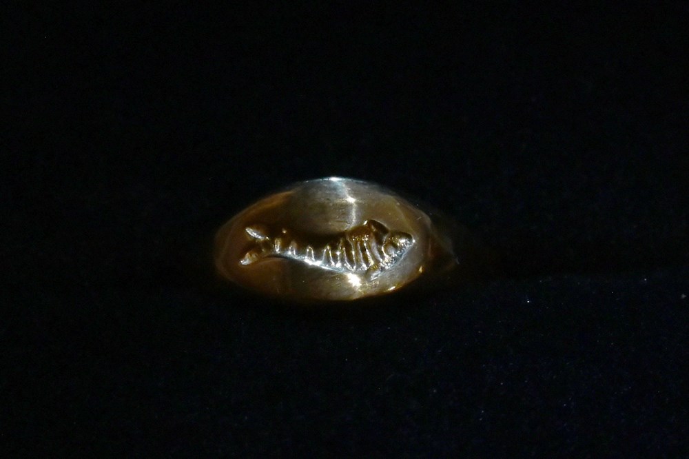 Prstenje je u Rimu osim ukrasne imalo simbolično i magijsko značenje, a riba je u rimsko doba bila simbol obilja, mudrosti, plodnosti i vječnog života. Suvenir je izradila pulska zlatarnica David, a moguće ga je kupiti u suvenirnici Arene. To je dakle zlatni rimski prsten sa stiliziranim prikazom ribe s kraja 1. stoljeća, a pronađen je u žarnom grobu na antičkoj nekropoli. Staklena urna u kojoj se zajedno sa spaljenim kostima nalazio prsten bila je položena u kamenu urnu s poklopcem. Materijal od kojeg je izrađena je srebro 925 pozlata, kazao je Komšo.