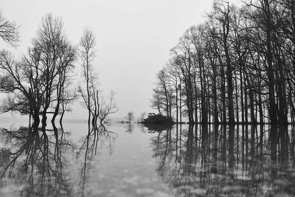 - Prvonagrađene fotografije Matka Florjančića "Zrcalo 1 i 2" nastale su u jesen 2023. godine prilikom njegovog prvog posjeta Parku prirode Lonjsko polje. U želji za istraživanjem okoline, u blizini naselja Mužilovčica, prepoznao je idealne preduvjete za dobru fotografiju: poplavljeno polje, magla te tmuran i oblačan dan… S druge strane, Rita Rumbolt, drugonagrađena mlada autorica predstavlja se diptihom Gradilišta, koja razumije kao motiv križanja povijesti i mogućih budućnosti, mjesta koja su po svojoj prirodi privremena, ali dugoročno i najopipljivije oblikuju svijet oko nas... Trećenagrađeni rad Anđeline Pujić "Odraz" poziva na razmišljanje o slojevitosti vremena i prostora- povijest, sadašnjost i budućnost križaju se, zapisano je uz ostalo,u katalogu prateće izložbe.
