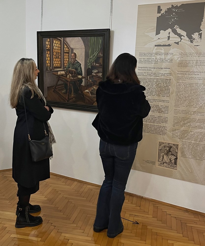 Matija Vlačić Ilirik jedan je od najistaknutijih mislilaca reformacijskog razdoblja. Kao gorljivi sljedbenik Martina Luthera bio je među najutjecajnijim i najborbenijim protagonistima protestantske reformacije koja je u 16. stoljeću snažno uzdrmala autoritet Katoličke Crkve i trajno promijenila europsku vjersku, političku i kulturnu povijest. Reformacija započinje 1517. godine objavom devedeset i pet teza Martina Luthera u Wittenbergu, a njezine ideje brzo su se širile zahvaljujući razvoju tiskarstva i sve većem objavljivanju knjiga. U takvom intelektualnom i izdavačkom okruženju nastajali su i brojni radovi Matije Vlačića Ilirika. Tijekom života djelovao je u nizu europskih gradova te je kao teolog, filozof i crkveni povjesničar ostavio bogat opus od više od 200 knjiga, pamfleta i drugih djela. Na otvorenju su se okupljenima obratili ravnateljica Pučkog otvorenog učilišta Labin Ana Dundara Pajić, kustosica i voditeljica Narodnog muzeja Labin, stručna suradnica izložbe Olja Višković, autorice izložbe Katarina Marić i Katarina Zenzerović, ravnatelj Arheološkog muzeja Istre Darko Komšo te ravnatelj Povijesnog i pomorskog muzeja Istre Gracijano Kešac.