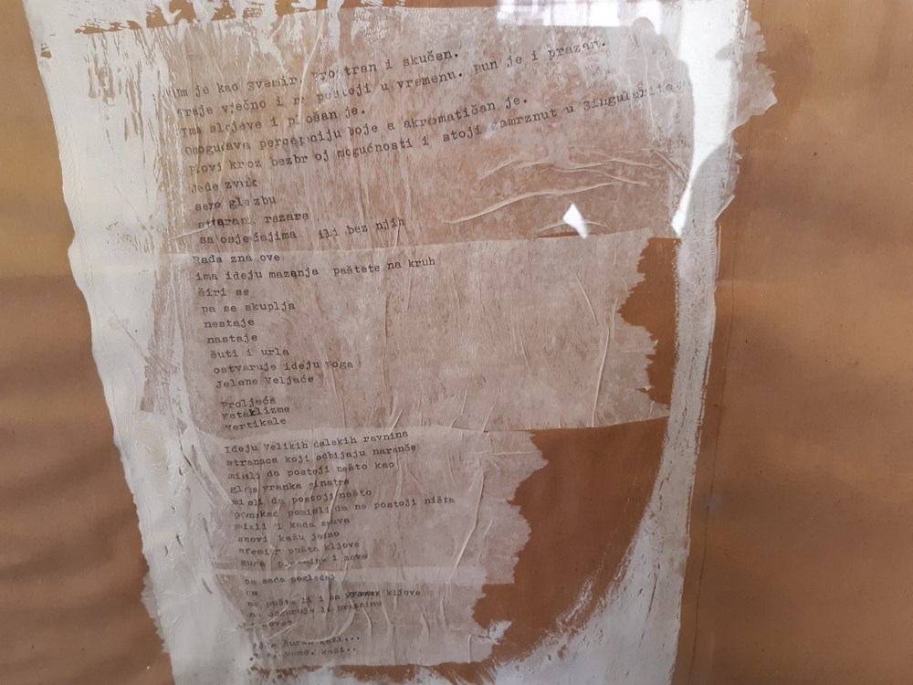 Prevladavanje boje (ili bolje rečeno ne boje), gesta, trag, podloga, tekstura i uporaba teksta dodatni su momenti koji ih ujedinjuju u ovoj izložbi manjeg formata. Iako primjeri analitičkog slikarstva nastaju istovremeno sa postminimalizmom i konceptualnom umjetnošću u povijesnom smislu, vidljiv je trag koji je ovakav pristup u umjetnosti obilježio i djelovanje ove trojice autora.
