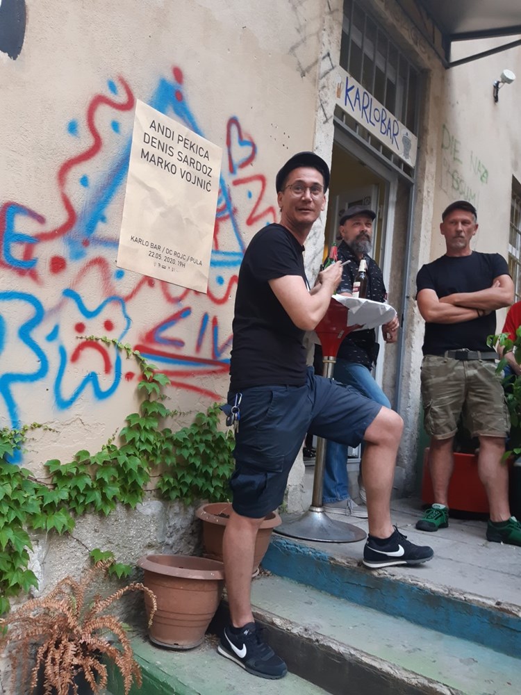 "Ovo je prvi događaj nakon 'lockdowna' u Rojcu. Izložba je neformalnog karaktera. Radovi govore za sebe. Bitno je da smo se našli, da se podružimo. Izložba nije prvom planu. Mislim da nam je svima pun kufer biti doma u zatvorenom, gledati filmove i čitati knjige, kazao je prekjučer prilikom otvaranja izložbe trojice pulskih autora Marko Vojnić, koji u Karlo baru izlaže radove zajedno s dvojicom kolega, prijatelja, umjetnika i pedagoga Andijem Pekicom i Denisom Sardozom.