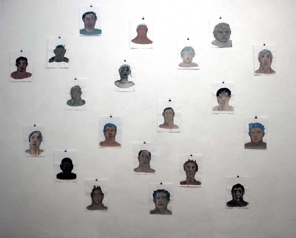 - U ovom postavu nalazimo značajne otklone od standardnih prikazivanja. Lica koja bismo raspoznali sa sigurnošću skoro da nema. Dvojica autora, iako rade istu temu, znatno se razlikuju pristupom oblikovanju. Ujedinjuje ih ideja projekta. Darko Brajković Đepeto Njapo koristi tonirane vodene otopine raznih, često likovno netipičnih čestica koje preuzimaju ulogu pigmenta. Njima oblikuje niz poprsja, oblike glava, stanovnika svog dijela postava. Niz je brojčano respektabilan, pa se unutar ovog projekta predstavlja samo dio radova realizirane kolekcije. Autor ponekad koristi čvrsti potez kojim određuje oblike, a ponekad dopušta pigmentu da se konformira, rasprostire medijem vode, na papirnatu podlogu. Podloga, obični uredski papir, ponaša se svojeglavo. On nije predviđen za sloj, sliku, već samo za administrativne ispise koji najčešće nemaju emociju, pa je papir isprovociran umjetnikovim činjenjem iskazuje neposlušnost: izvija se pred naporom pigmentirane vodene otopine, reagira na nebirokratske intervencije umjetnika. Njapovi likovi nastaju spontano, djelomično gestualno, istaknuo je kustos galerije Fonticus Eugen Borkovsky.