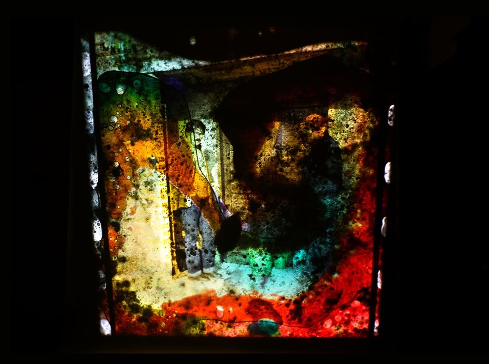 - Jedan dio izložbe je svojevrsni nastavak ciklusa kemigrama izloženih prije tri godine u Galeriji Makina, uz dodatak novih slika koje su rezultat eksperimentiranja s dijapozitivima. Te bih radove mogao nazvati "izmanipulirane", "izdistorzirane" slike.