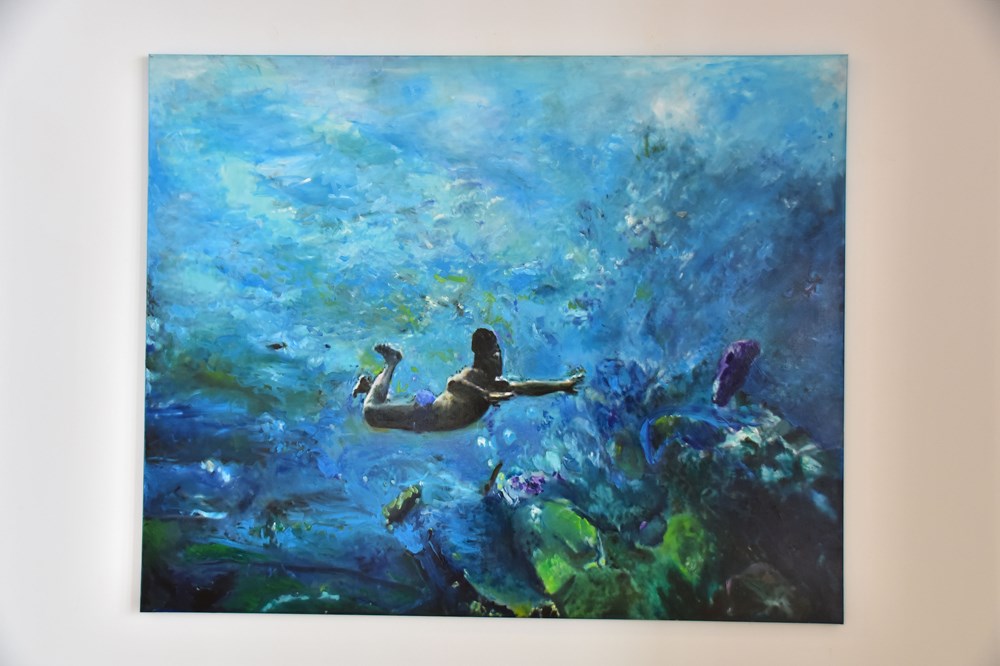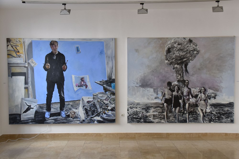 - Istovremeno radim različite stvari i bavim se različitim slikarskim strategijama u isto vrijeme, i onda u isto vrijeme nastaju različite kolekcije. Ova izložba je samo preslikana izložba iz Umjetničkog paviljona u Zagrebu gdje sam upravo razmišljajući o konceptu izložbe došao do te ideje da bih mogao napraviti tu vrstu izložbe. Kako nisam dugo u Puli izlagao, odlučio sam je preseliti ovdje, s time da je ovo puno reduciraniji prostor u kojem ne mogu pokazati sve. Ova izložba se sastoji od nekoliko ciklusa. Jedan je onaj s velikim platnima gdje je moj autoportret, to je monokromno slikarstvo, gdje nije prisutan taj koloristički aspekt, a naslovio sam ga "There is nothing higher than offering yourself to the infinite" odnosno "Nema ničeg uzvišenijeg nego ponuditi sebe beskonačnom".