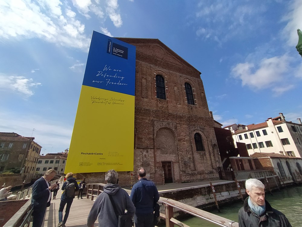 Što se tiče nacionalnih paviljona, ima ih 80, a Kamerun, Namibija, Nepal, Oman i Uganda sudjeluju na Bijenalu prvi put. Zbog aktualne ratne situacije velik publicitet dobio je paviljon Ukrajine koji zapravo predstavlja instalacija Pavla Makova pod nazivom "Fontana iscrpljenosti". Sastoji se od 78 bakrenih lijevaka kroz koje voda, cureći postupno, usporava do kapljica na dnu, a cijelo djelo prožima duboka i melankolična ljepota. Makov kaže da ova "metafora iscrpljenosti" služi i u kontekstu ruske invazije na Ukrajinu i dodaje: "Ne, nismo spremni za susret s ruskim umjetnicima. Sve dok traje ovaj rat, jedini moguć dijalog s Rusima je onaj na frontu. Kad njihove trupe napuste našu zemlju i kad ratni zločini budu kažnjeni, onda ćemo, možda, moći opet razgovarati."