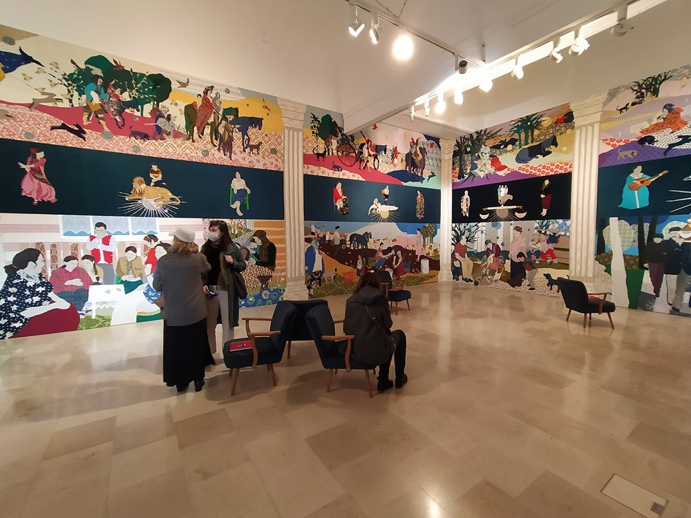 Sličan pristup slijedi i poljski paviljon s izložbom "Re-enchanting the World", gdje je romska umjetnica Małgorzata Mirga-Tas postavila ogroman friz koji se proteže cijelim prostorom, što je zahtijevalo veliku tehničku spretnost i estetsku senzibilnost kako bi se komadićima tkanina prenijele sve impresije, od nježno padajućeg lišća do duboke tuge. Ovaj projekt inspiriran je slikama iz renesansne palače Schifanoia u Ferrari, čime europsku ikonosferu i povijest umjetnosti proširuje prikazima romske kulture, često zanemarene. Simboli palače, uključujući horoskopske znakove, dekanski sustav, vremenske cikluse i migraciju slika kroz vrijeme i kontinente, predstavljaju vizualne i ideološki referentne točke, koje umjetnica upisuje u poljsko-romski identitet i narodno povijesno iskustvo, gradeći afirmativnu ikonografiju najveće europske manjine.