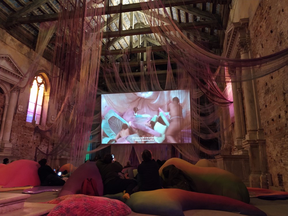 Dugi je red ispred paviljona Velike Britanije za izložbu "Feeling Her Way" koju je pripremila Sonia Boyce, prva crnkinja koja predstavlja Britaniju. Njezin rad, koji je dobio Zlatnog lava za najbolji paviljon, opisuje se kao kolaborativna, zanosna ženska polifonija s pet pjevačica, među ostalim Tanitom Tikaram i Jacqui Dankworth, koje izvode glazbene improvizacije. Izložba se sastoji od teseliranih tapeta, zlatnih geometrijskih struktura i video projekcija u čiji prostor uranjaju zvuci crnih britanskih pjevačica, utjelovljujući osjećaj slobode, moći i ranjivosti.
