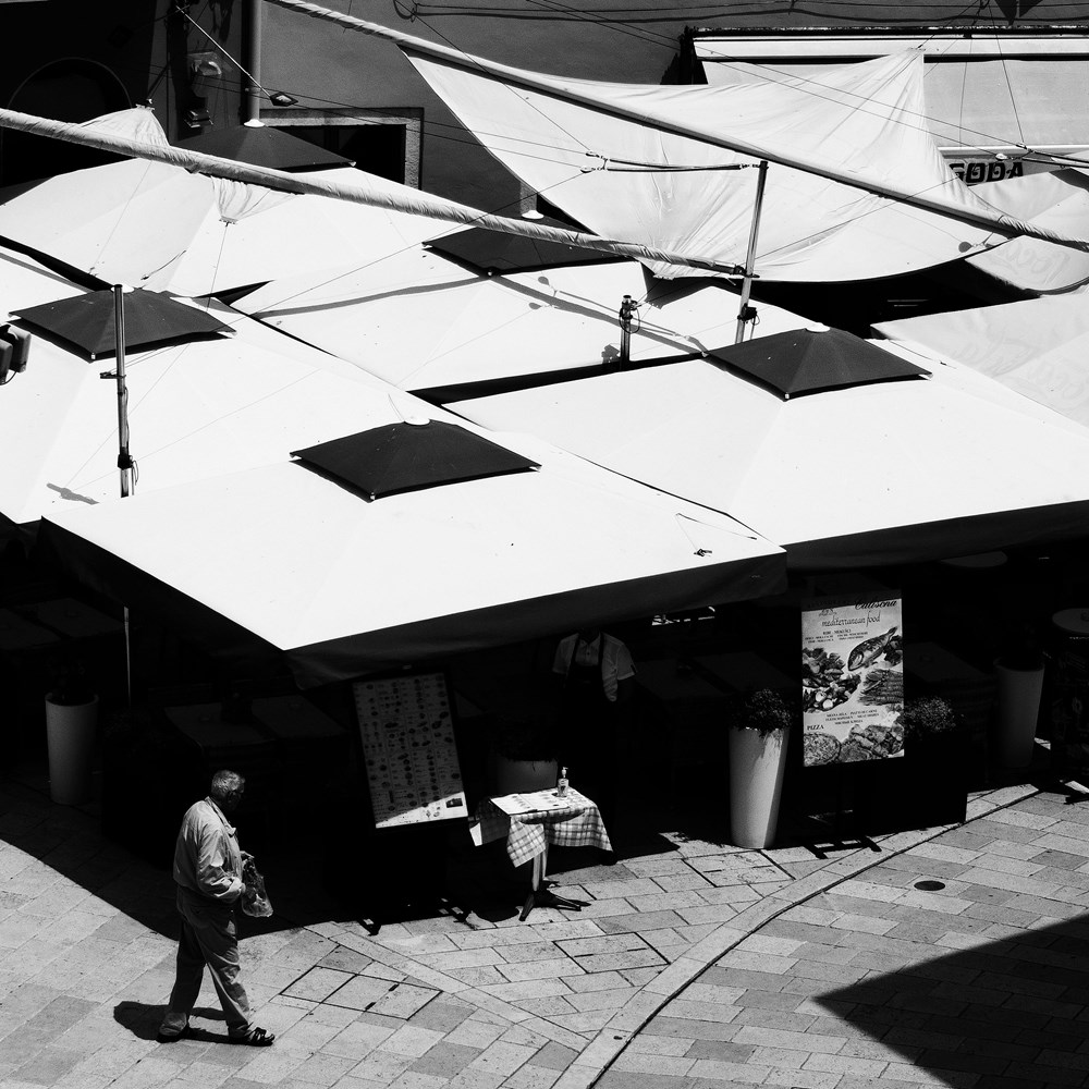 Svojim fotoaparatom Aleksandra Orlić bilježi, riječima kustosice, "dio pločnika, kaldrme, neba, prostora trga, ulice, pogleda na neki detalj arhitekture - pa čak i voajerskog pogleda na naznaku nečijeg interijera".