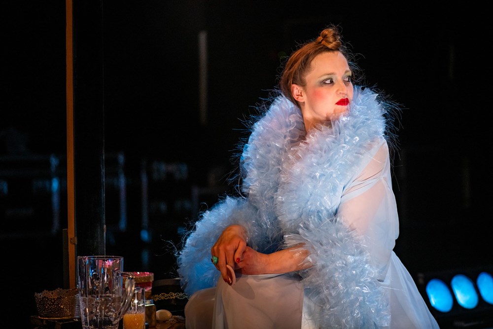 Mihovilović potpisuje i scenografiju uz Gorana Šaponju, a ni ovaj put nije iznevjerila Desanka Janković svojim kostimima. Taj vizualni dojam omogućava glumcima da ne moraju histerizirati kako bi podigli atmosferu, iako nije da štede glasove, a dobro je što nijedan od likova nije dominantan. On možda povremeno djeluje kao glas razuma, ali to znamo jer komunicira s njom. Ona ga održava na životu, i u biti nitko njih ne prisiljava da budu zajedno. Oni to jednostavno žele čak i kada to ne izražavaju riječima, a Lara Živolić i Luka Mihovilović uspjeli su to prezentirati kroz međusobnu igru u kojoj na svu sreću, nisu pokušali potkupiti publiku jeftinim emocijama iako je u jednom trenutku izgledalo da bi to mogli učiniti.