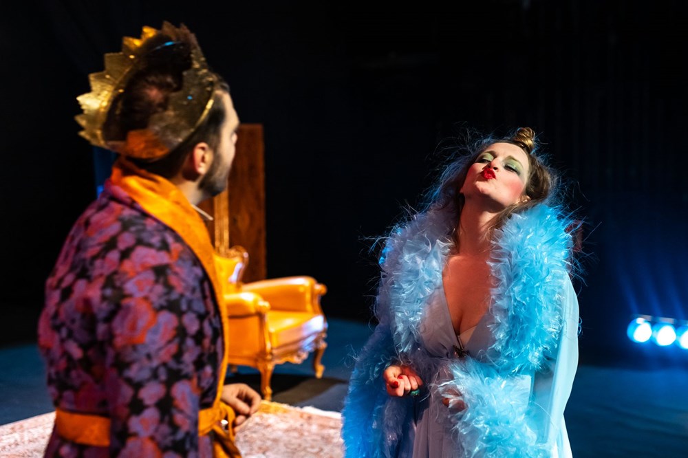On možda povremeno djeluje kao glas razuma, ali to znamo jer komunicira s njom. Ona ga održava na životu, i u biti nitko njih ne prisiljava da budu zajedno. Oni to jednostavno žele čak i kada to ne izražavaju riječima, a Lara Živolić i Luka Mihovilović - u Ionescovoj drami koju je režirao Luka Mihovilović - uspjeli su to prezentirati kroz međusobnu igru u kojoj, na svu sreću, nisu pokušali potkupiti publiku jeftinim emocijama