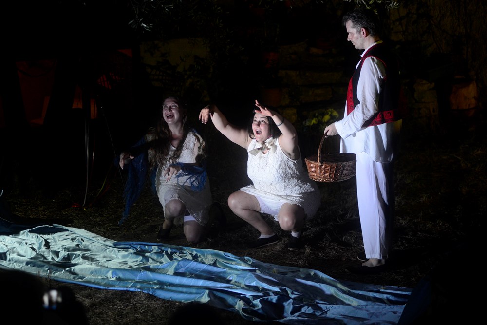 Posebno je potresan i emotivan trenutak u predstavi kada narodni ples, smijeh i veselje prekida sirena signaliziravši time početak rata koji je Ruska Federacija 24. veljače započela protiv ukrajinskog naroda. Lica aktera performansa, kao i publike koja pomno prati njihov svaki korak, naglo se mijenjaju. Ukrajinske običaje koje pomno njeguju sve generacije, sada zamjenjuje borba u kojoj se udružuju hrabri sunarodnjaci. Olesia Rusinova i dvoje glumaca na sceni koji predstavljaju mlade Ukrajince, zajednički pripremaju improvizirane molotovljeve koktele radi obrane svoje zemlje i naroda. Ondje gdje je nekada tekao plavi potok na kojem su se igrale mlade djevojke, sada teče krv stradalih žrtava rata. Vesele dječje uzvike s početka performansa, sada je zamijenila tužna ukrajinska pjesma koja je istodobno u sebi nosila i tugu, ali i snagu otpora ratnoj tragediji koja je zadesila Ukrajinu.