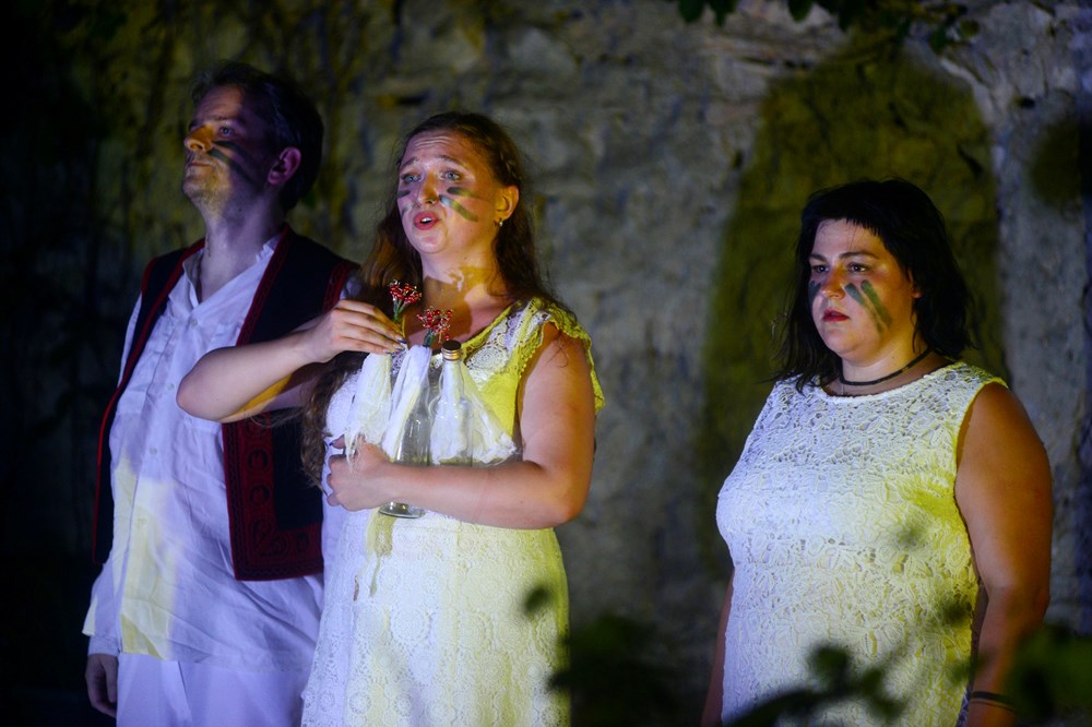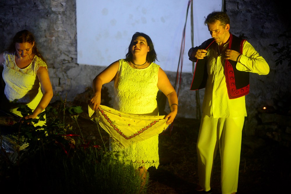 - Jedan od naših običaja u zimskom razdoblju je "Šedruvanya", stari ukrajinski novogodišnji ritual tijekom kojeg grupice ljudi posjećuju kuće u susjedstvu i pjevaju pjesme svojim domaćinima. Potom se u proljeće tradicionalno opraštamo od zime i pozdravljamo sunce, pozivajući prirodu da se probudi i procvjeta. Proljetna tradicija je i "Maslyana". Tijekom tog blagdanskog tjedna pripremamo palačinke, pozdravljamo zimu i mašemo nadolazećem suncu. Ljeti je najsvjetliji i najmističniji tradicionalni praznik Ivana Kupale. Te večeri neudane djevojke prave vijence i bacaju ih niz rijeku ne bi li saznale hoće li naći ljubav svog života. Ako vijenac potone znači da neće pronaći ljubav te godine, a ako vijenac nastavi plutati znak je da se spreme za udaju. Te noći palimo krijes i preskačemo preko njega. To se smatra pročišćenjem, a ples oko vatre važan je i sakralni čin ove proslave, priča Rusinova o ukrajinskim običajima koji su potom glumci demonstrirali u performansu.