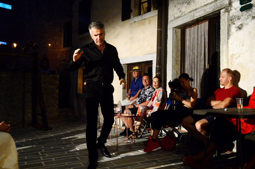 Glavna je to premisa književnika Miloša Latinovića, redatelja i autora koncepta predstave "Žena iz Porto Pima" nastale prema tekstu poznatog talijanskog književnika i intelektualca Antonia Tabucchija, a koja je sinoć premijerno izvedena u iznimno intimnoj atmosferi 2. Bembo festa - Festivala malih formi u Balama. Ambijentalna predstava, zapravo ambijentalna monodrama, u kojoj glumi i pripovijeda upečatljivi Jugoslav Krajnov, prvak drame Srpskog narodnog pozorišta iz Novog Sada, uprizorena je u prekrasnom, malenom terasastom dvorištu iza baljanske palače Soardo Bembo. Priča Antonia Tabucchija, slavnog književnika kojem je Portugal bio druga domovina, nadahnuta je životom ljudi i događajima na Azorskom otočju u Atlantiku, gdje je pisac nekoliko godina živio. Kazališno izmiještanje Tabucchijeve priče u scenski dojmljiv prostor, prirodnog mediteranskog ambijenta u Balama, bio i jedan od redateljskih poticaja za ovu kazališnu koprodukciju Teatra Fort Forno iz Bala i Reflektor teatra iz Novog Sada.
