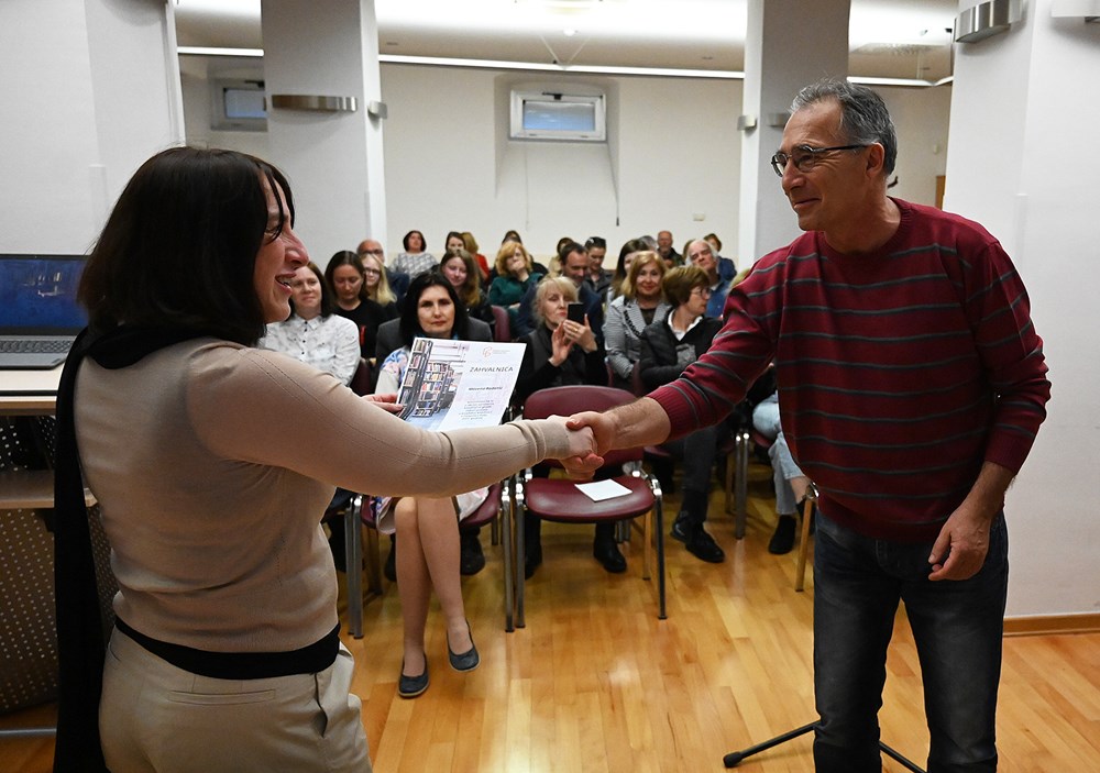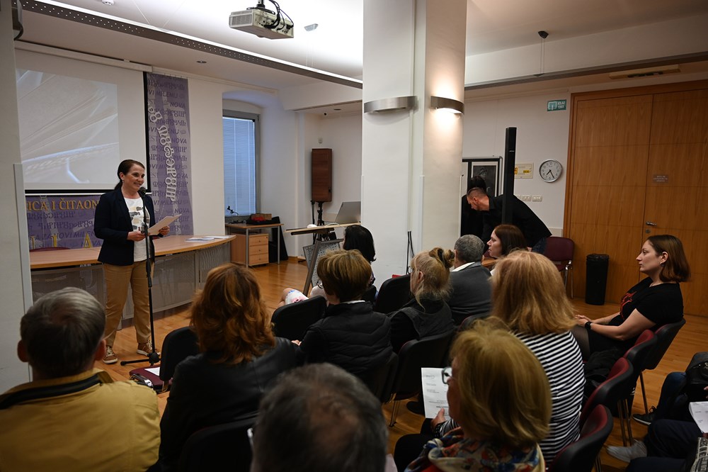 Uslijedilo je predavanje dr. sc. Matije Jelače "O književnosti i kulturi u dobu umjetne inteligencije i ekonomije pažnje", također interdisciplinarnoj temi kojoj se može pristupiti s raznih gledišta. Doc. dr. sc. Matija Jelača je voditelj Katedre za književnost Odsjeka za kroatistiku Filozofskog fakulteta Sveučilišta Jurja Dobrile u Puli gdje drži kolegije iz teorije književnosti, povijesti svjetske književnosti, komparativne književnosti, postmodernizma, horor književnosti, metodologije znanstvenog rada i kritičkog mišljenja. Potom je tu bio kviz znanja opće kulture koji je priredila suradnica knjižnice, svestrana Matea Ćelebija.