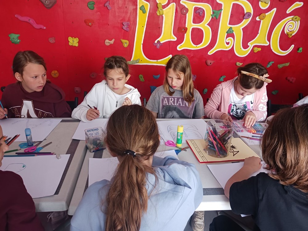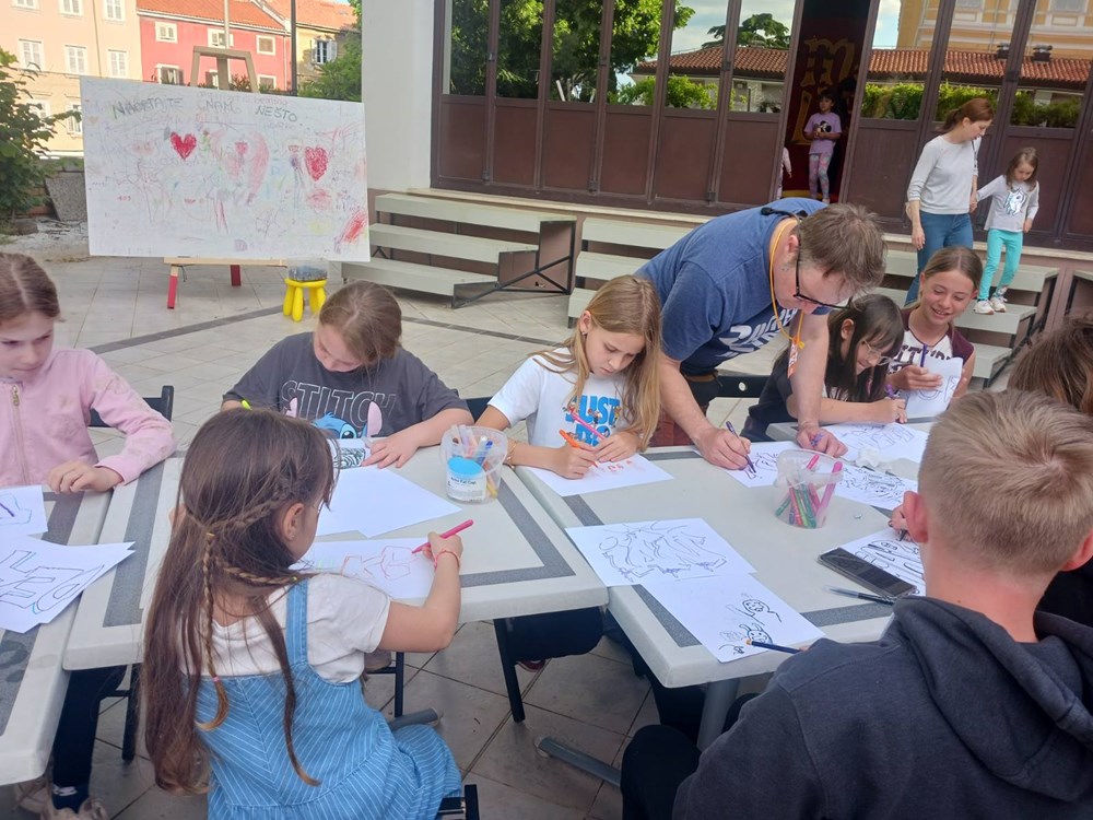 Zatim u radionici stripa koju je vodila Ena Jurov nakon čitanja i razgovora o slikovnici polaznici su kreirali svoje likove. Mogla su to biti djeca s radionice ili njihovi pravi ili izmišljeni prijatelji.