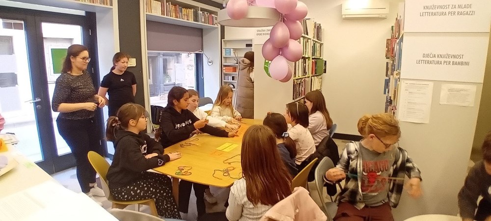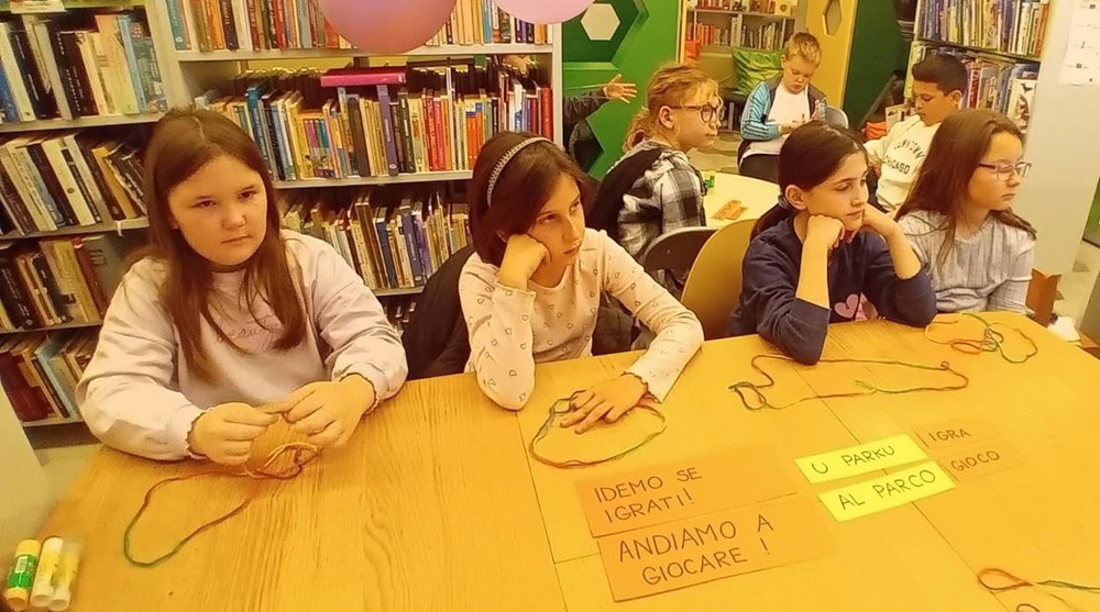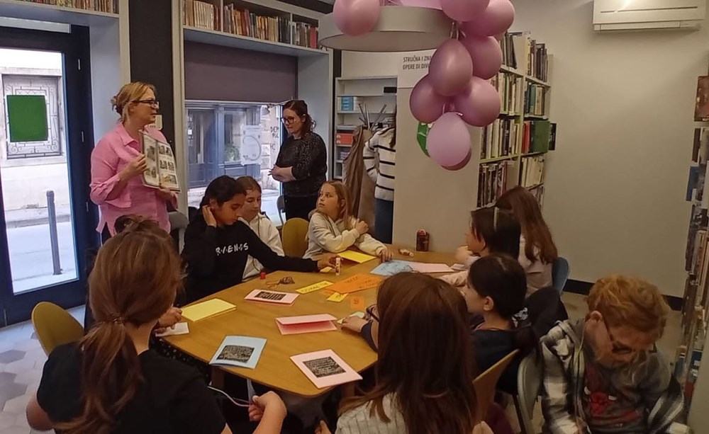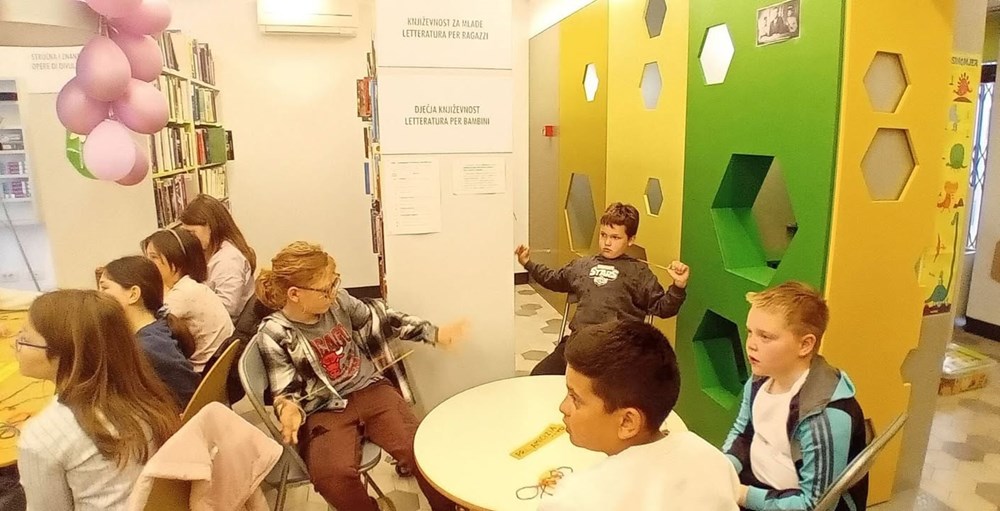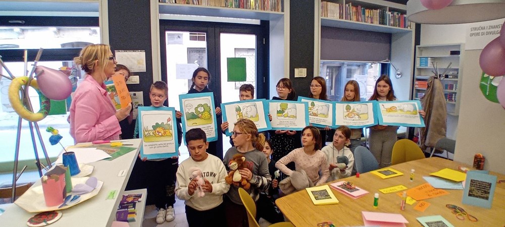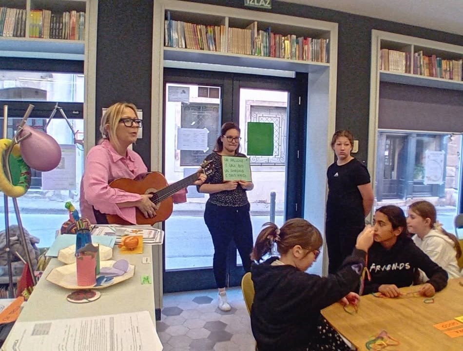 Učiteljica razredne nastave na talijanskom jeziku Ester Richter-Kontošić održala je u Knjižnici Vodnjan zabavnu i poučnu radionicu na talijanskom jeziku. Na radionici su sa svojim učiteljicama sudjelovali učenici trećeg razreda Osnovne škole Vodnjan, a nastojalo se da djeca govore na talijanskom jeziku, bez obzira na to što su početnici u učenju. Ester je ukrasila knjižnicu balonima i pitala djecu na što ih baloni asociraju, tj. uz kakve ih događaje vezuju. Djeca su odgovorila da ih najviše vezuju uz rođendane. Zatim su svi zajedno zapjevali "En ten tini". Sljedeća je pjesma bila "Un pallone e una bici". S obzirom da djeca ne znaju ovu pjesmu na talijanskom, učiteljica im je pokazivala tekst dok je Ester svirala. Melodija je djeci itekako poznata jer je to slobodan prijevod "Kad se male ruke slože" iz dječjeg filma "Vlak u snijegu", nastalog prema istoimenoj knjizi Mate Lovraka. Poslije pjevanja razgovarali su koliko je važno da pomažemo svojim prijateljima jer je lako zabavljati se s njima dok je sve u redu, ali kad se pojavi problem, mnogi se udalje i nestanu. No, pravi prijatelj je ovdje za nas upravo u nevolji. Ester je učenicima prvenstveno kroz pjesmu htjela prenijeti tu poruku. Druga važna poruka je da djeca više vremena provode u prirodi. Pročitala im je i priču "Dino, Lella e Leo" – o lavu koji je upao u jamu i spasili su ga kornjača i slon, a radionica je nastavljena interdisciplinarno - spajajući razne umjetnosti u dobrom raspoloženju.