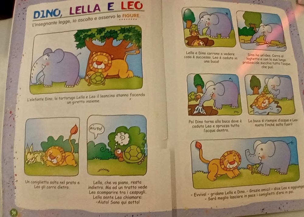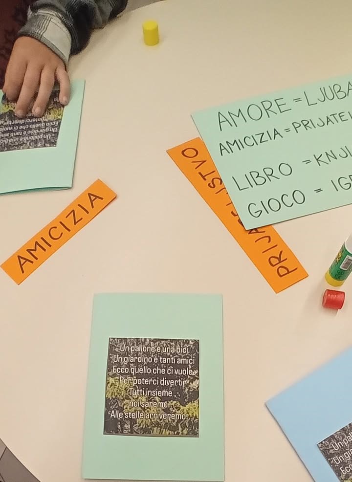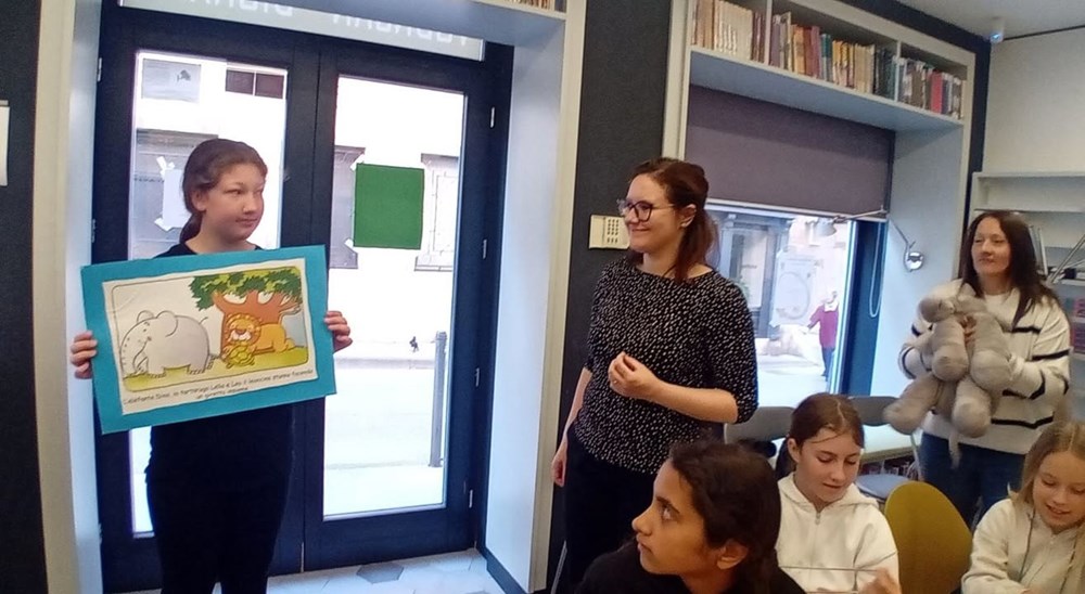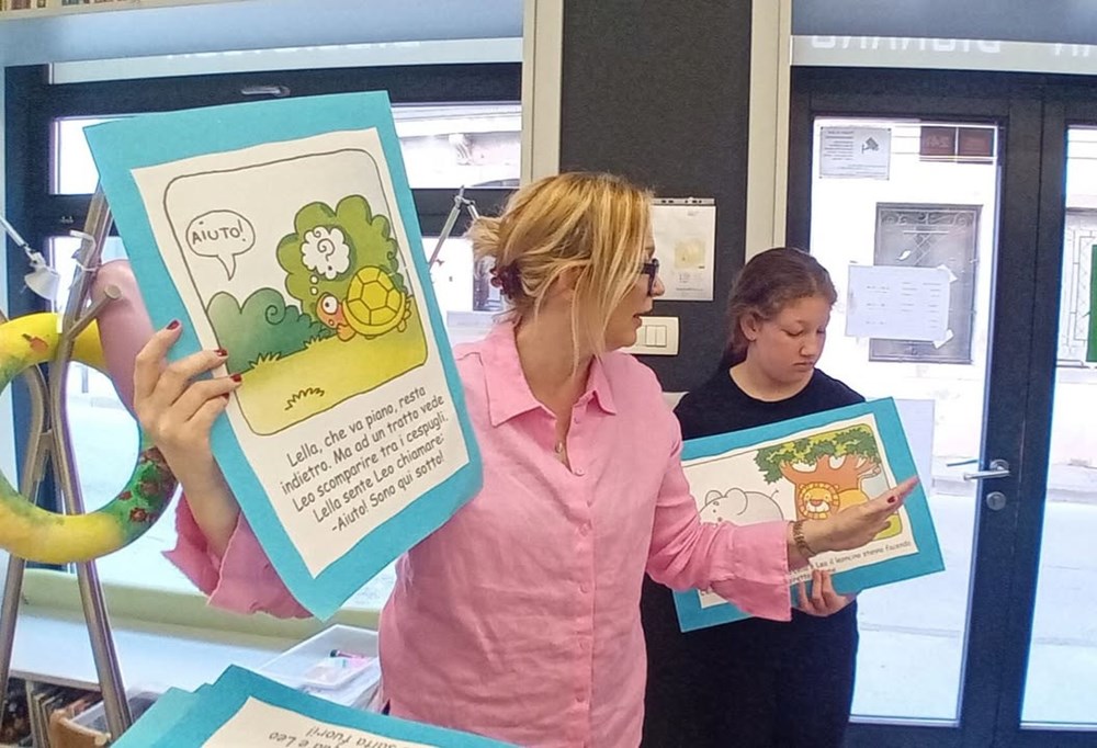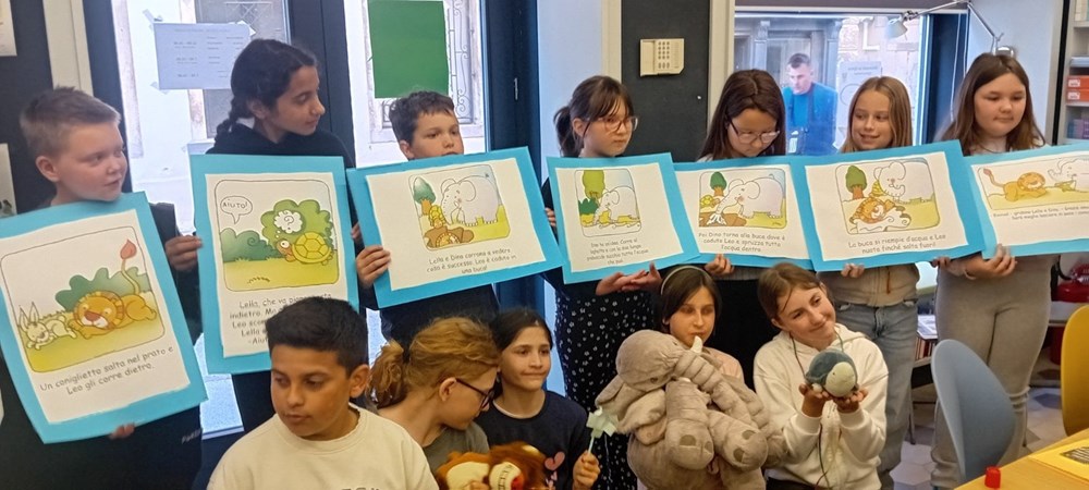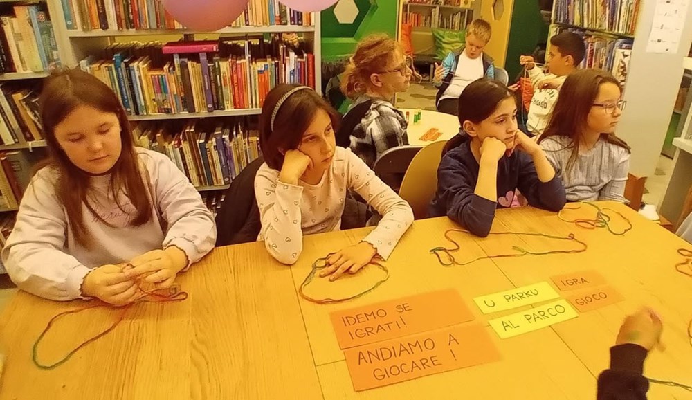 Učiteljica razredne nastave na talijanskom jeziku Ester Richter-Kontošić održala je u Knjižnici Vodnjan zabavnu i poučnu radionicu na talijanskom jeziku. Na radionici su sa svojim učiteljicama sudjelovali učenici trećeg razreda Osnovne škole Vodnjan, a nastojalo se da djeca govore na talijanskom jeziku, bez obzira na to što su početnici u učenju. Ester je ukrasila knjižnicu balonima i pitala djecu na što ih baloni asociraju, tj. uz kakve ih događaje vezuju. Djeca su odgovorila da ih najviše vezuju uz rođendane. Zatim su svi zajedno zapjevali "En ten tini". Sljedeća je pjesma bila "Un pallone e una bici". S obzirom da djeca ne znaju ovu pjesmu na talijanskom, učiteljica im je pokazivala tekst dok je Ester svirala. Melodija je djeci itekako poznata jer je to slobodan prijevod "Kad se male ruke slože" iz dječjeg filma "Vlak u snijegu", nastalog prema istoimenoj knjizi Mate Lovraka. Poslije pjevanja razgovarali su koliko je važno da pomažemo svojim prijateljima jer je lako zabavljati se s njima dok je sve u redu, ali kad se pojavi problem, mnogi se udalje i nestanu. No, pravi prijatelj je ovdje za nas upravo u nevolji. Ester je učenicima prvenstveno kroz pjesmu htjela prenijeti tu poruku. Druga važna poruka je da djeca više vremena provode u prirodi. Pročitala im je i priču "Dino, Lella e Leo" – o lavu koji je upao u jamu i spasili su ga kornjača i slon, a radionica je nastavljena interdisciplinarno - spajajući razne umjetnosti u dobrom raspoloženju.