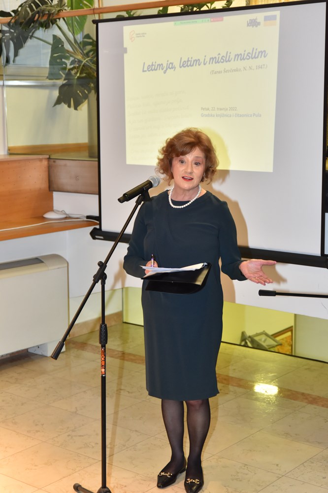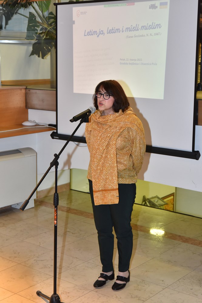 Pročelnica Odjela za kulturu i razvoj civilnog društva Lena Radunić pohvalila je ovu inicijativu knjižnice i suradnju s Istarskim narodnim kazalištem, a potom i sama čitala stihove ukrajinskih autora.