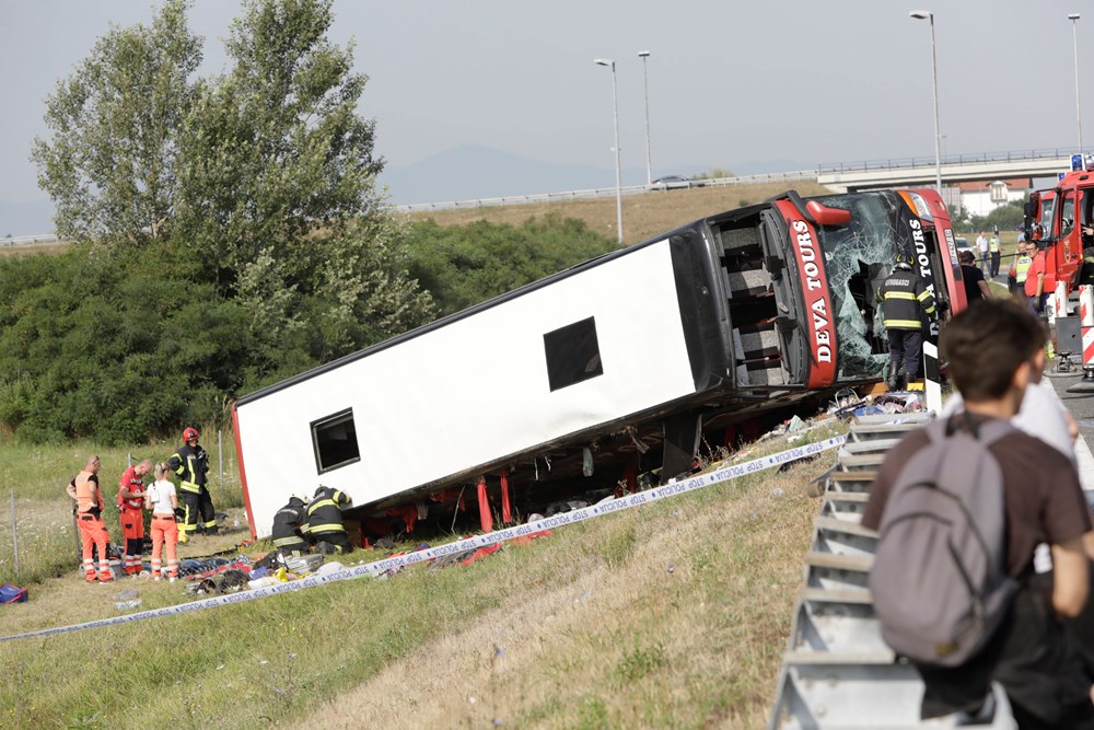 U nesreći su tri osobe smrtno stradale dok je nekoliko desetaka osoba zadobilo tjelesne ozljede, izvjestila je policija koja očevidom utvrđuje okolnosti pod kojim se dogodila prometna nesreća.