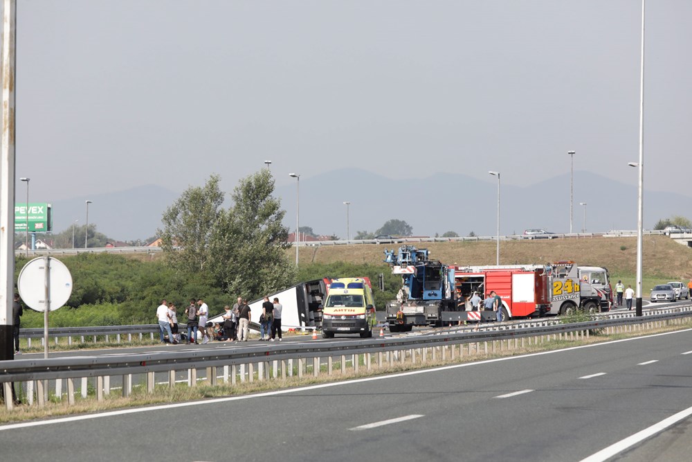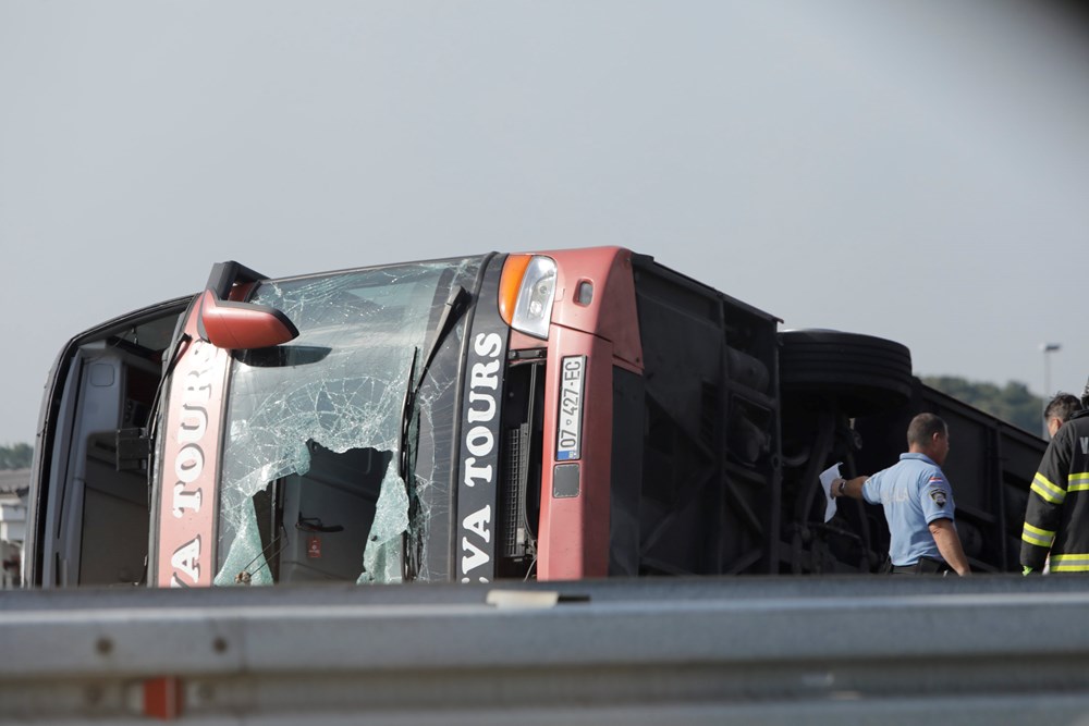 Policija je oko 6,20 sati dobila dojavu da se na autocesti kod Slavonskog Broda, u blizini naplatnih kućica na južnom kolničkom traku dogodila prometna nesreća u kojoj je došlo do slijetanja autobusa makedonskih nacionalnih oznaka.