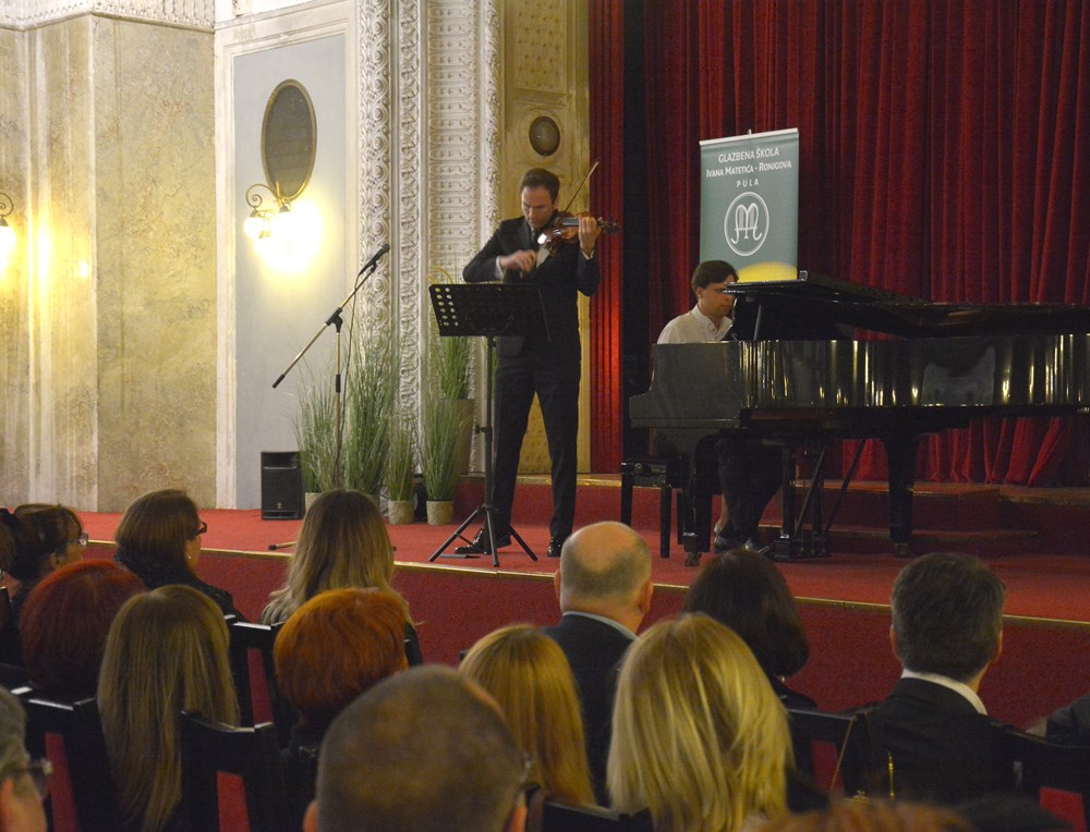 Uz pratnju klavirista Vladimira Miloševića, proslavljeni je violinist nadahnuto izveo izabrani repertoar, a koncert je jedan od niza aktivnosti koju pulska glazbena škola priređuje u jubilarnoj godini djelovanja.