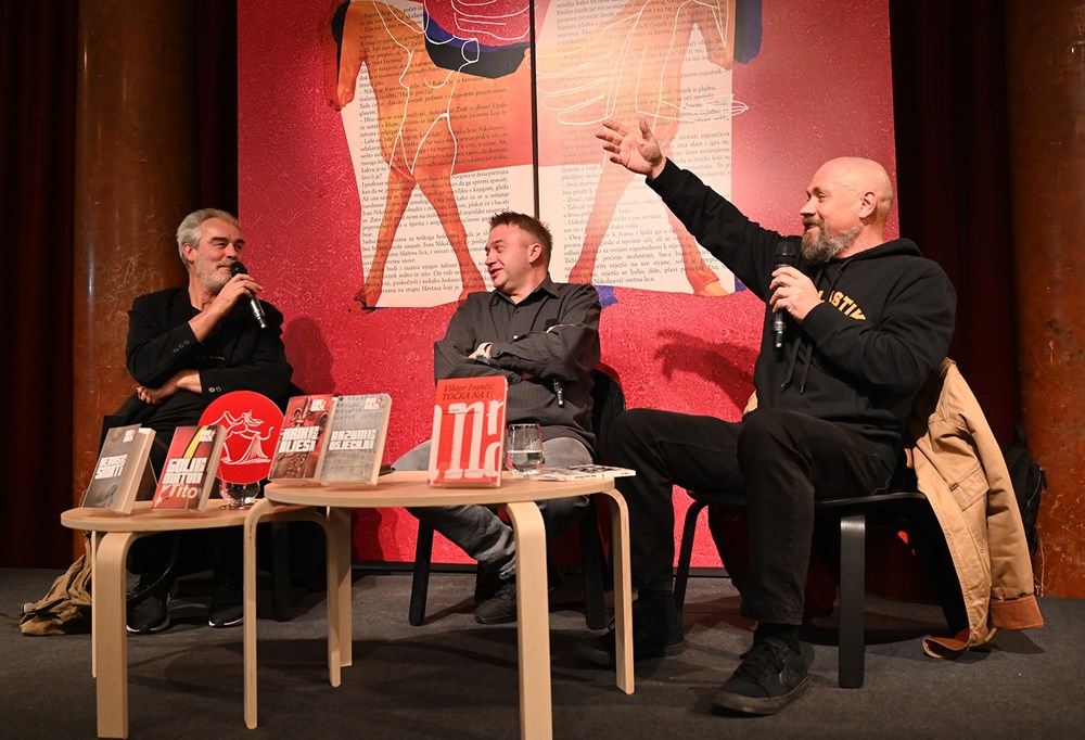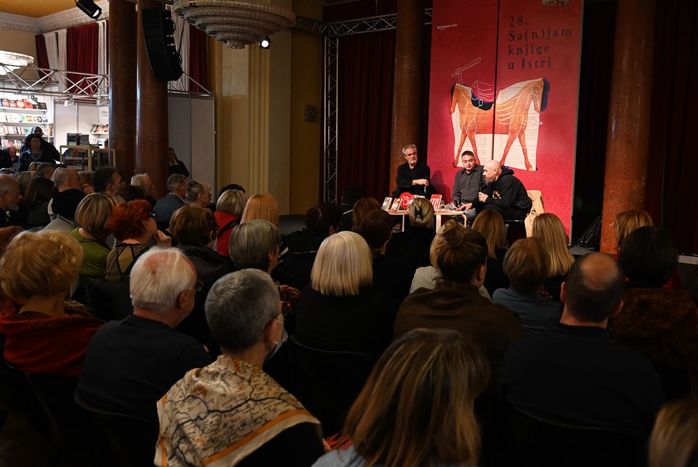 Iznimno brojna publika - najbolje posjećena promocija, odnosno program do sada na Sajmu knjige bio je "Autor čita autora" u utorak navečer, kada su predstavljene knjige Viktora Ivančića "Točka na U" (Ex Libris) i Borisa Dežulovića "KOD KOŽE 1 – 4: Derviš i smrt, Goli i mrtvi, Krik i bijes, Razum i osjećaji" (Art Rabic – Atelje Figure), na način da je Ivančić predstavljao Dežulovića i obratno, a moderator programa bio je Emir Imamović Pirke.