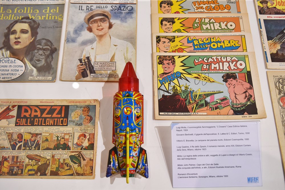 Davide Monopoli, jedan od autora izložbe uz Silviu Casolari, koji nas je proveo izložbenim prostorom, istaknuo je da su tri ključna trenutka ovoga postava - početak dvadesetog stoljeća, pedesete i sedamdesete godine te suvremeno doba – koji pokazuju kako je talijanska znanstvena fantastika odigrala presudnu ulogu u konsolidaciji moderne fantastične imaginacije u međunarodnom kontekstu, zahvaljujući autorima kao što su Emilio Salgari, Primo Levi i Dino Buzzati.