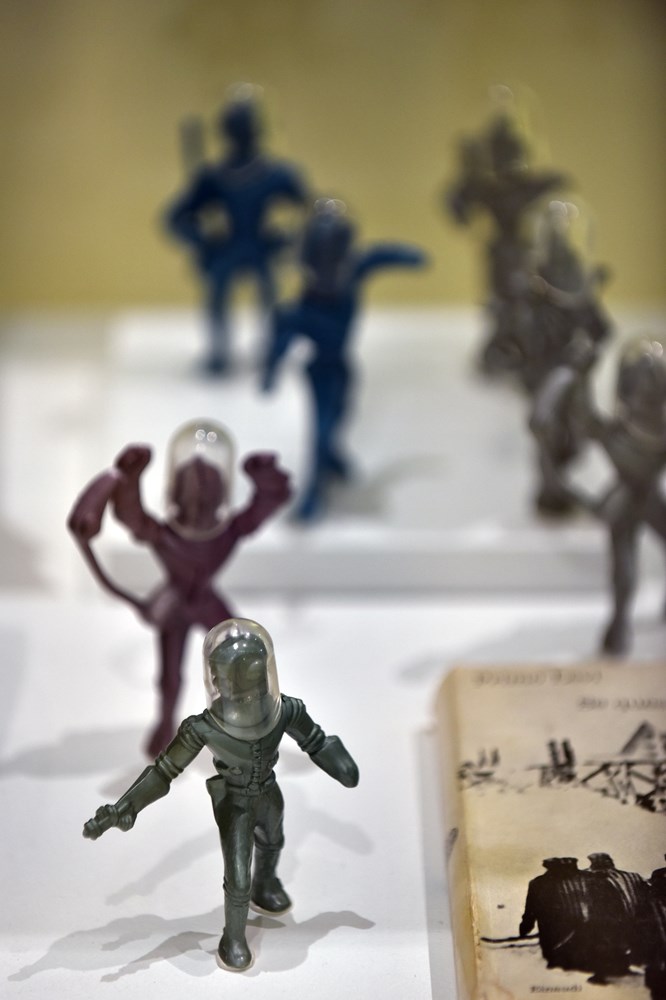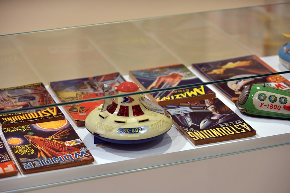 Putovanje je satkano od rijetkih književnih izdanja, originalnih djela ilustratora, filmskih i televizijskih audiovizualnih dokumenata, vintage materijala i predmeta koji pripovijedaju o dalekim svjetovima i identitetima – robotima, putovanjima kroz vrijeme, izvanzemaljcima i gradovima budućnosti – danas sve bližima.
