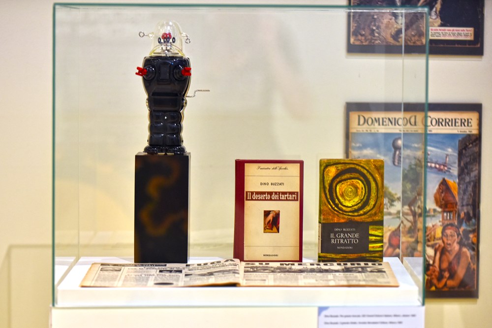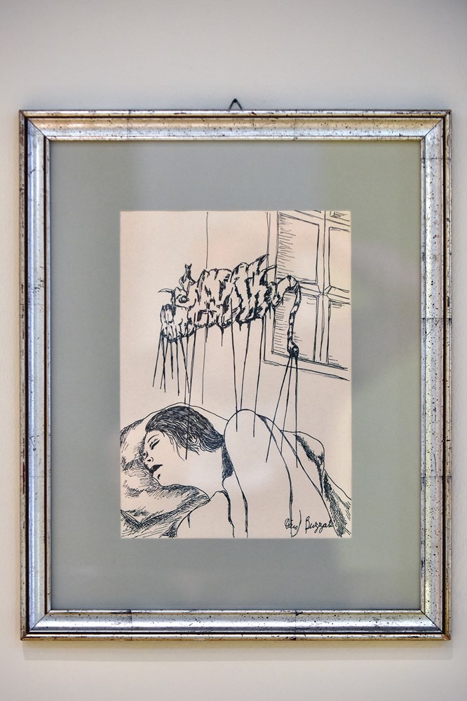 Dino Buzzati, autor je fantastičnih priča koje su prevedene diljem svijeta, a tu su izložene i njegove grafike, također na tragu tih književnih ostvarenja.