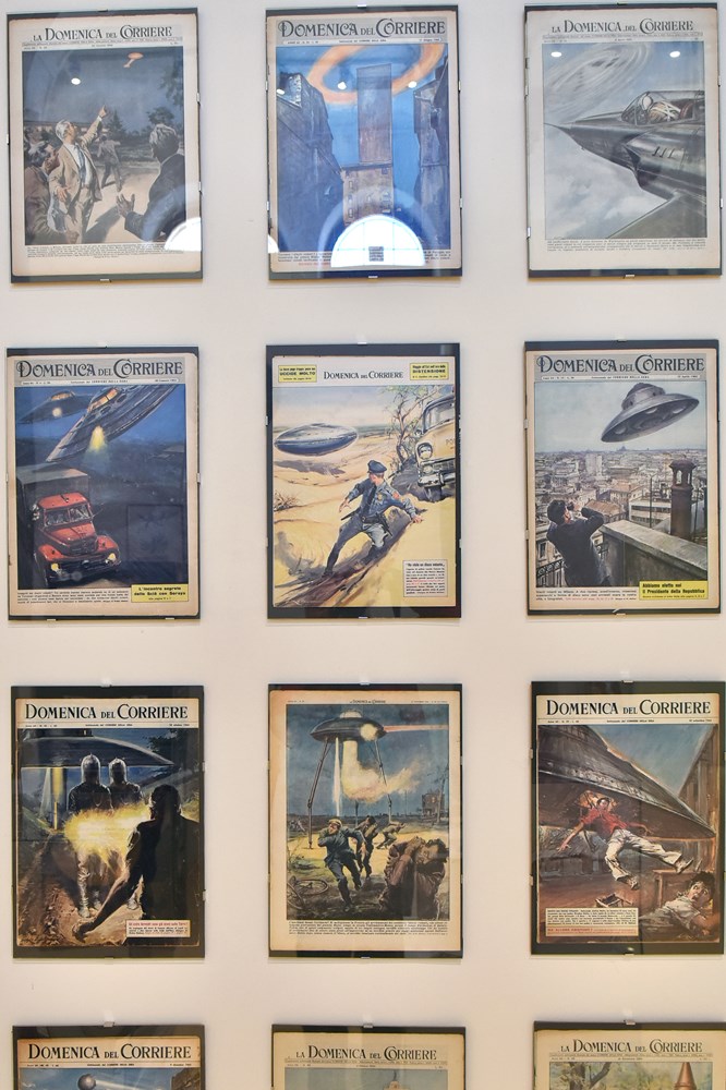 Na upit kako su došli do Pule i ovog izložbenog prostora, rekao je da je to bilo zahvaljujući generalnom konzulu u Rijeci Davideu Bradaniniju, a on osobno te kolegica Casolari su strastveni kolekcionari koji se bave tim žanrom. Također, pomogli su i drugi kolekcionari svojom bogatom građom. Dio postava su i "A come Andromeda" i "Gamma". Cijeli taj izložbeni segment dio je istraživačkog rada koji je tv-emisija "Wonderland" koja se prikazuje na RAI 4 realizirala s Muzejom MUFANT u povodu 60. obljetnice RAI-ja.